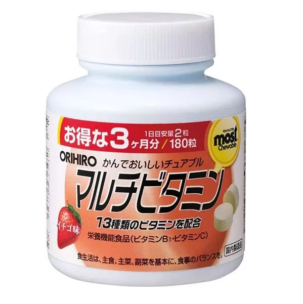 Мальтоза, лактоза, кукурузный крахмал, порошок клубничного сока / сложный эфир сахарозы, VC, ниацин, отдушка, подкислитель, витамин E, пантотеновая кислота Ca, витамины B6, B1, B2, В12, подсластитель (склароза), витамин A, фолиевая кислота, биотин, витамин K, витамин D.
