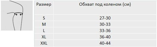 Для правильного выбора подходящего размера коленного ортеза Orlett RKN-203 необходимо сантиметровой лентой измерить обхват колена (нога согнута в колене на 90 градусов) и воспользоваться таблицей: