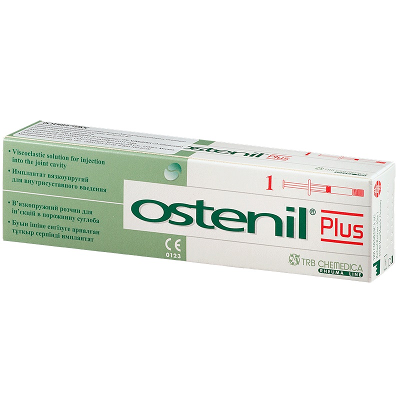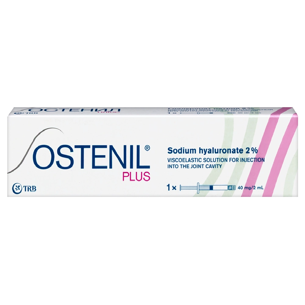 Остенил® Плюс — прозрачный раствор нативного высокоочищенного гиалуроната натрия, полученного путем ферментации и не содержащий животных белков. В состав Остенил® Плюс входит также маннитол, который минимизирует активность свободных радикалов, тем самым обеспечивая стабильность молекулярной структуры гиалуроната натрия. Высокий профиль безопасности Остенил® Плюс подтвержден испытаниями на биосовместимость.