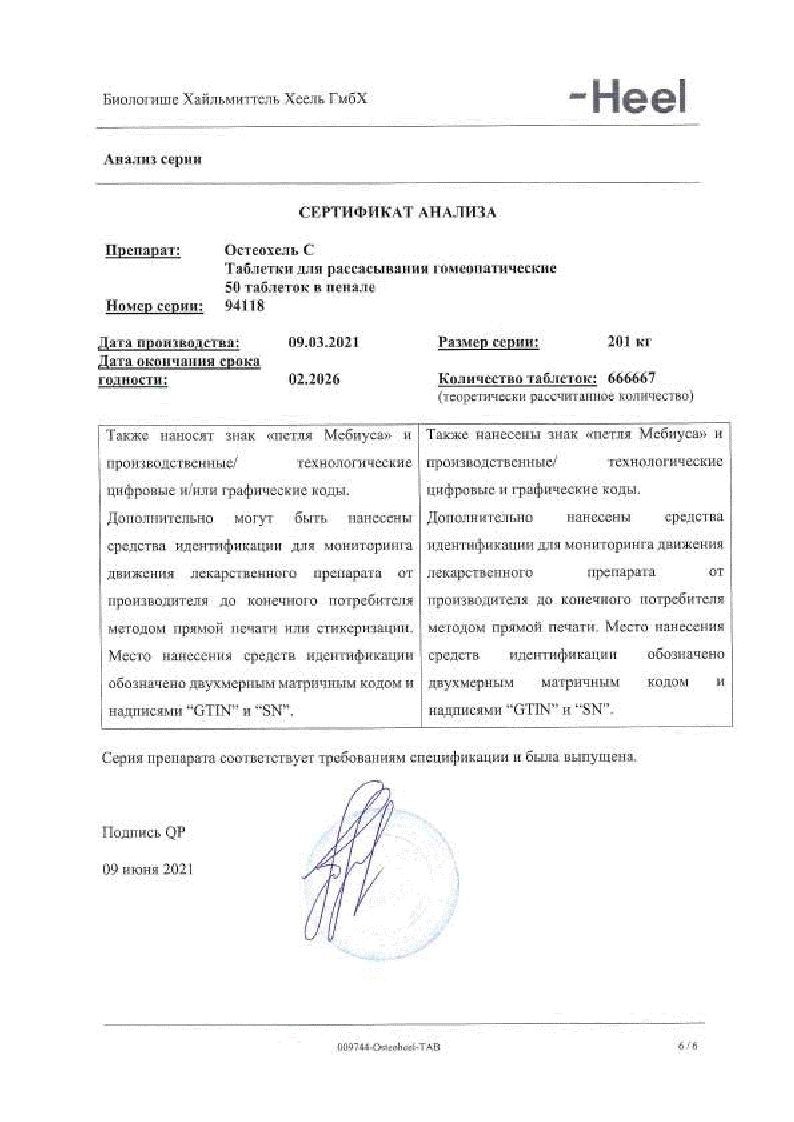 | Calcium phosphoricum (кальциум фосфорикум) D6 | 60 мг |