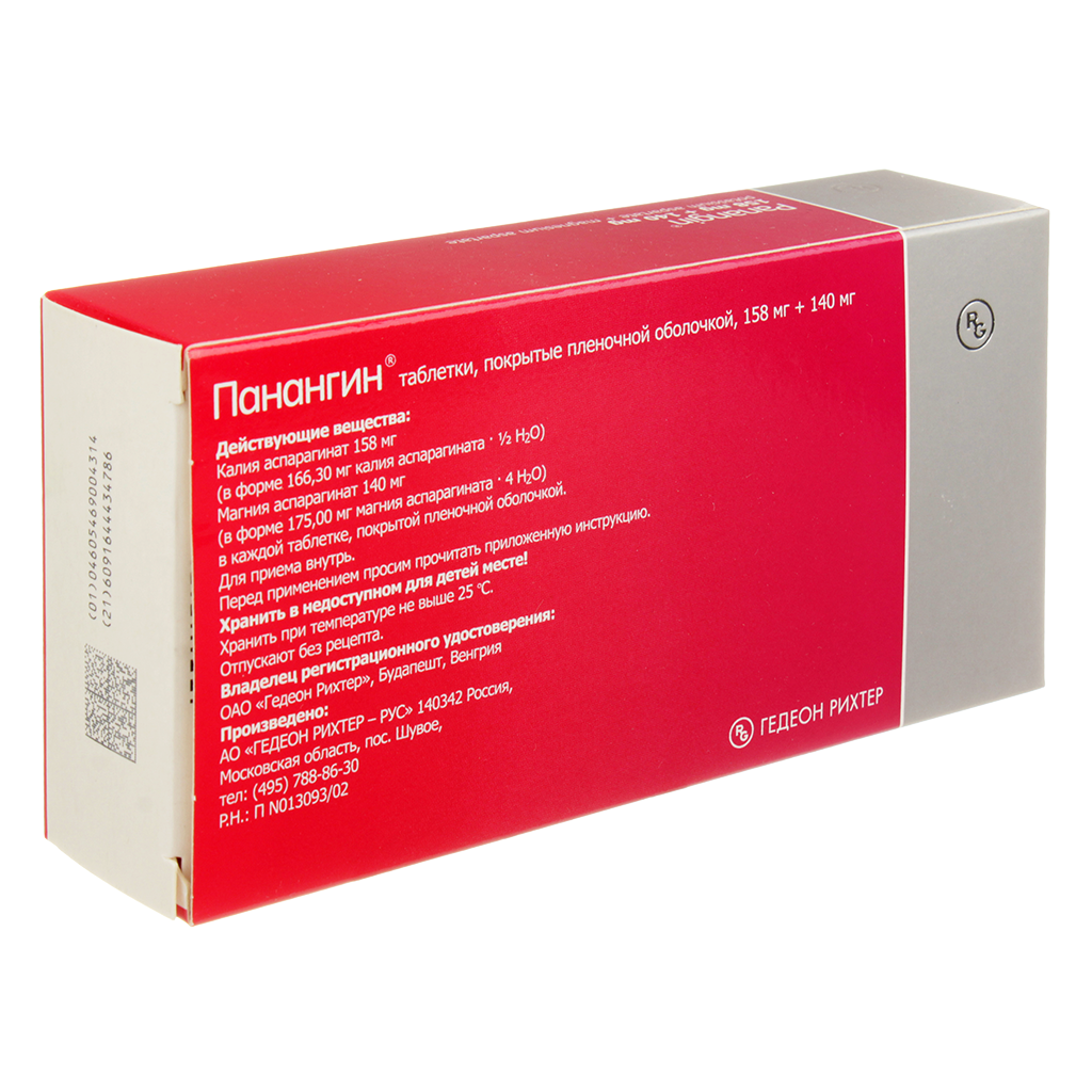 В каждой таблетке, покрытой пленочной оболочкой, препарата Панангин® содержится 36.2 мг калия. Это следует учитывать пациентам с нарушениями функции почек или пациентам, получающим препараты калия или калийсодержащие пищевые добавки.