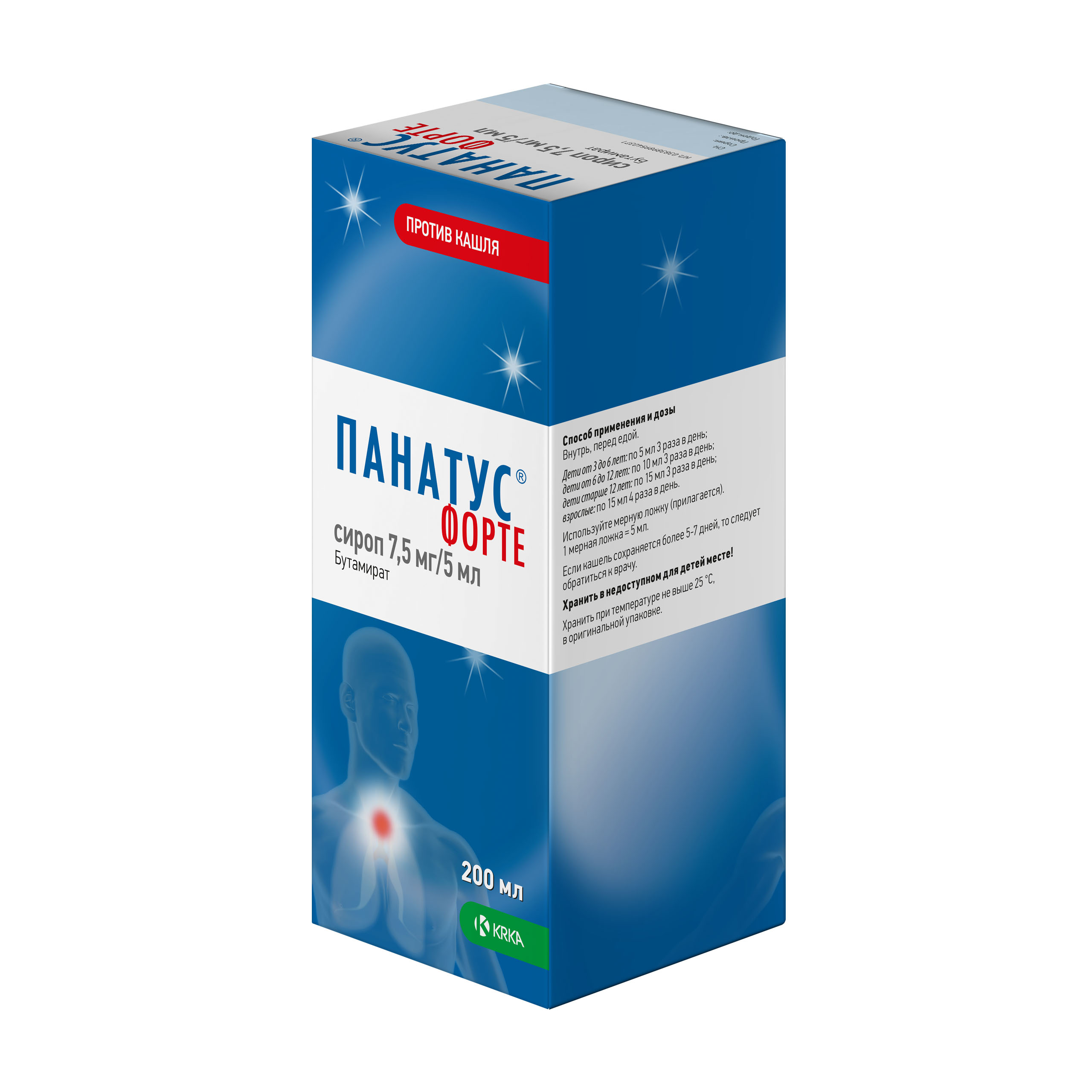 Бутамират - действующее вещество препарата Панатус форте, является противокашлевым средством центрального действия, не относящимся к алкалоидам опия ни химически, ни фармакологически. Подавляет кашель, обладая прямым влиянием на кашлевой центр. Оказывает бронходилатирующий эффект. Способствует облегчению дыхания, улучшая показатели спирометрии (снижает сопротивление дыхательных путей) и оксигенации крови.