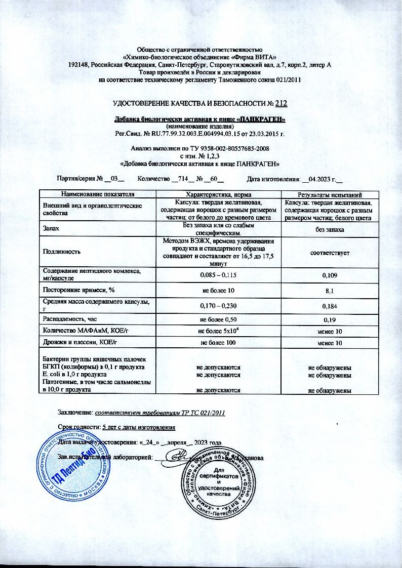 Панкраген® целесообразно использовать для профилактики негативного действия на поджелудочную железу различных токсических факторов, алкоголя и лекарственных препаратов.
