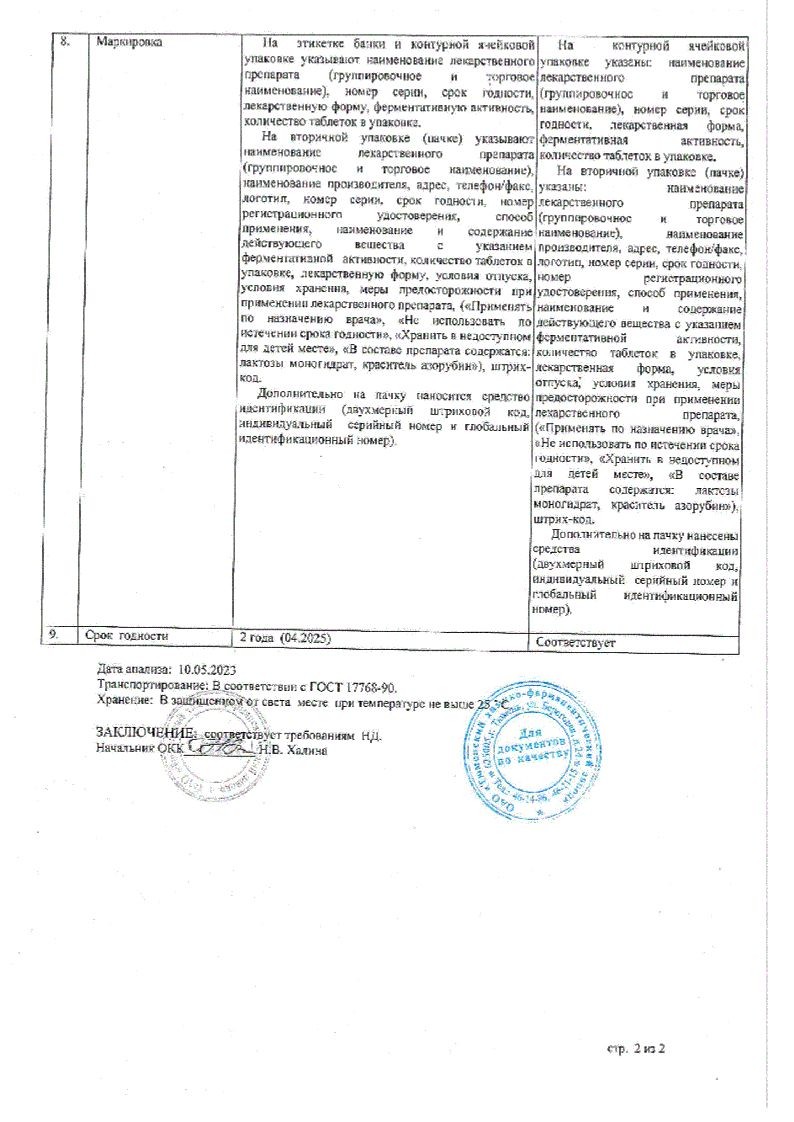 Продолжительность лечения может варьировать от нескольких дней (при нарушении процесса пищеварения вследствие погрешностей в диете) до нескольких месяцев или лет (при необходимости постоянной заместительной терапии.2 года. Не использовать по истечении срока годности.
