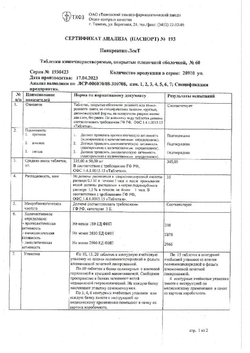 Продолжительность лечения может варьировать от нескольких дней (при нарушении процесса пищеварения вследствие погрешностей в диете) до нескольких месяцев или лет (при необходимости постоянной заместительной терапии.2 года. Не использовать по истечении срока годности.