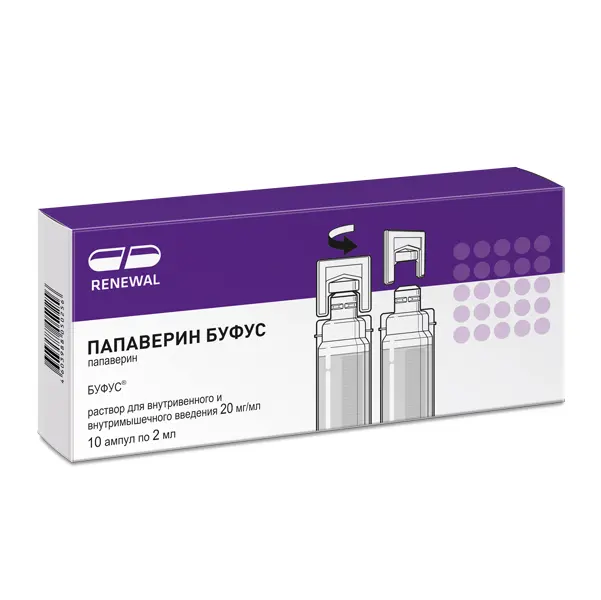 Действующее вещество: 20 мг папаверина гидрохлорида