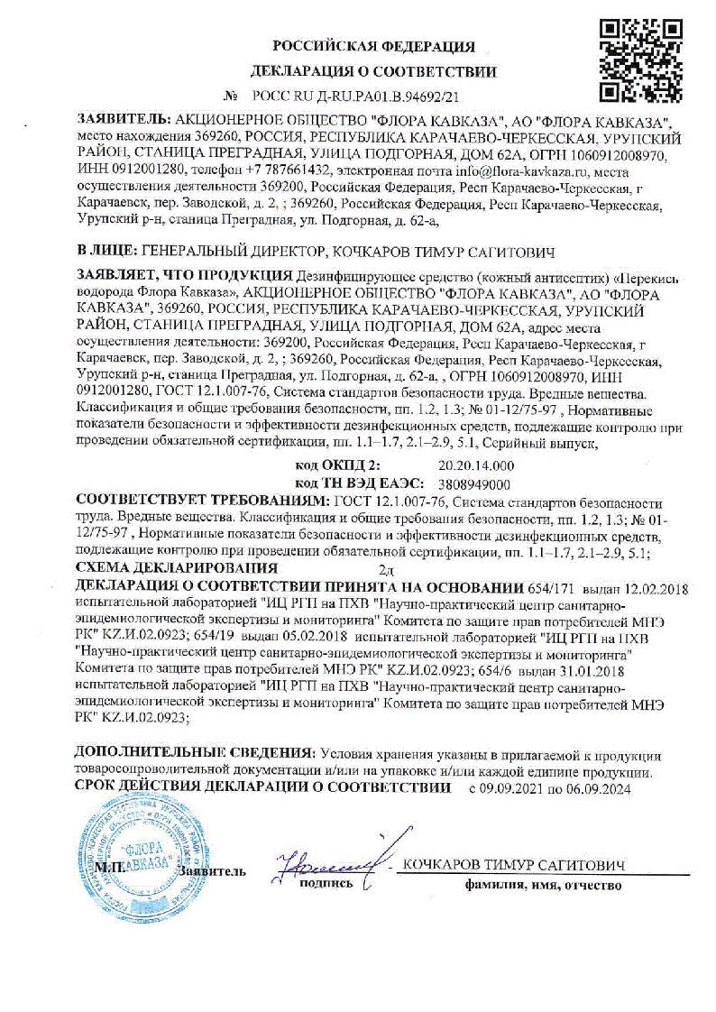 Антисептическое средство из группы оксидантов. При контакте перекиси водорода с поврежденной кожей или слизистыми оболочками высвобождается активный кислород, при этом происходит механическое очищение и инактивация органических веществ (протеины, кровь, гной). Антисептическое действие не является стерилизующим, при его применении происходит лишь временное уменьшение количества микроорганизмов. Обильное пенообразование способствует тромбообразованию и остановке кровотечений из мелких сосудов.