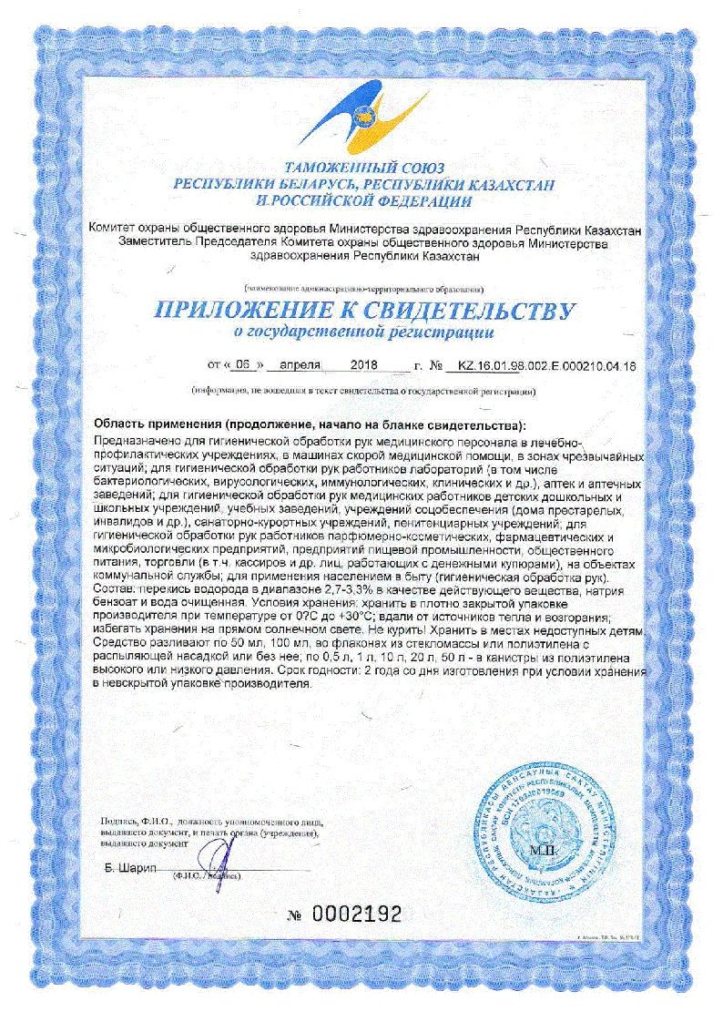 Активное вещество: водорода перекись медицинская (эквивалентно содержанию водорода пероксида 3 г) - от 7.5 до 11 г в зависимости от содержания водорода пероксида в исходном препарате.