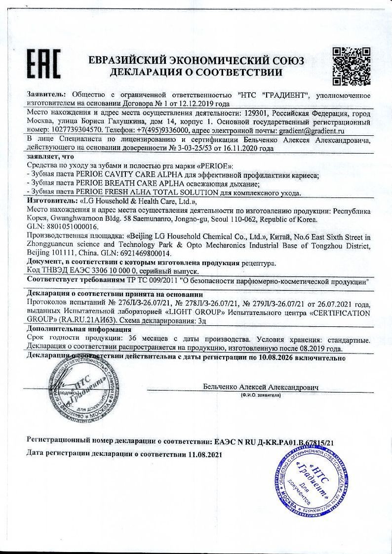 Perioe Зубная паста Breath Care Alpha освежающая дыхание, 100 г (арт. 10044140) Цену уточняйте по телефону в интернет аптеке в Москве и Московской области — Aptstore