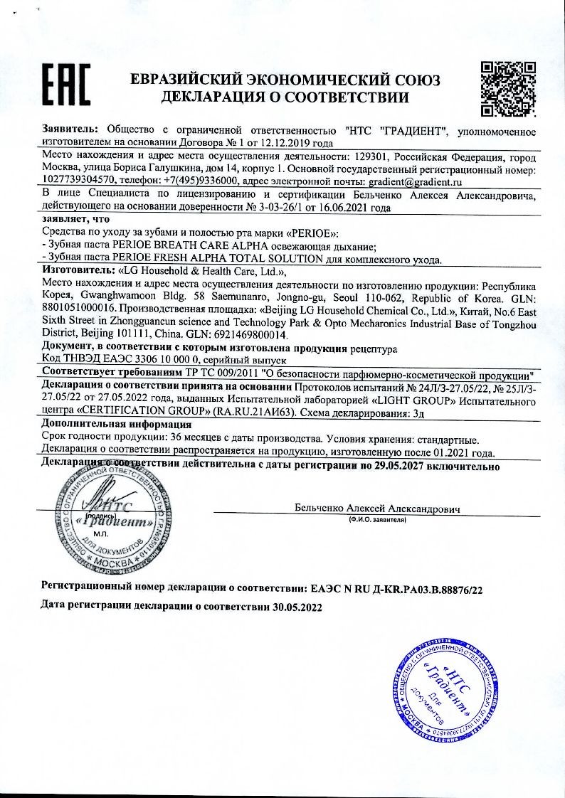 Купить Perioe Зубная паста Breath Care Alpha освежающая дыхание, 100 г