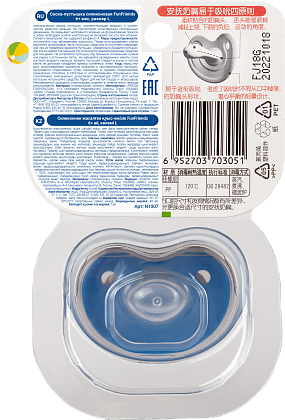 Для детей с 6-ти месяцев. Не рекомендуется использовать пустышку как заменитель груди в период налаживания кормления грудью. Рекомендуется убирать пустышку во время сна ребенка.