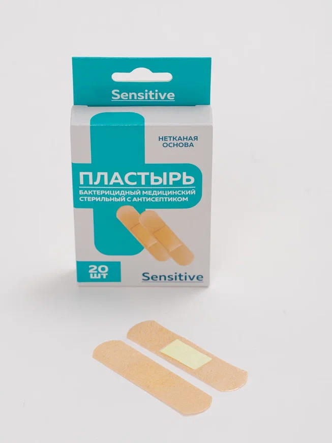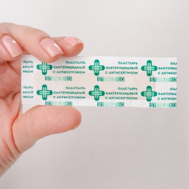Пластырь бактерицидный медицинский стерильный с антисептиком, на нетканой основе, 19х72 мм - 20 шт. в упаковке. Применяется для защиты поврежденных кожных покровов при ссадинах, порезах, влажных мозолях, бытовых ожогах. В качестве антисептика использован риванол. Перед применением пластыря нужно очистить поврежденный участок кожи. Чистыми сухими руками извлечь пластырь из индивидуальной упаковки, как показано на наших фото, и аккуратно, не прикасаясь к сорбционной подушечке пальцами, приложить на поврежденную поверхность кожи. Края пластыря надежно зафиксировать, не допуская возникновения складок. Рекомендуется менять пластырь не реже 2 раз в день и при намокании подушечки.