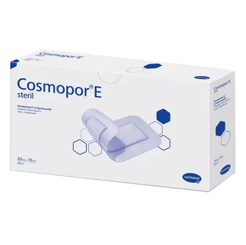 Cosmopor E – стерильная самоклеящаяся повязка на рану из мягкого нетканого материала с впитывающей подушечкой.