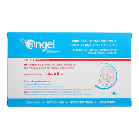 Повязки бактерицидные на полиуретановой основе «Angel» предназначены для закрытия инфицированных гранулирующих и послеоперационных ран.
