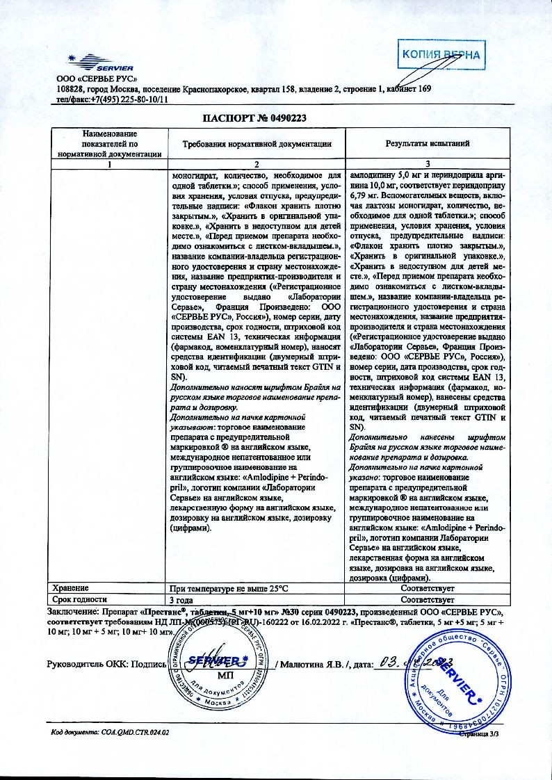 Престанс таблетки - комбинированный антигипертензивный и антиангинальный препарат. Периндоприл - ингибитор фермента, превращающего ангиотензин I в ангиотензин II (ингибитор АПФ). АПФ, или кининаза II, является экзопептидазой, которая осуществляет как превращение ангиотензина I в сосудосуживающее вещество ангиотензин II, так и разрушение брадикинина, обладающего сосудорасширяющим действием, до неактивного гептапептида. Поскольку АПФ инактивирует брадикинин, подавление АПФ сопровождается повышением активности как циркулирующей, так и тканевой калликреин-кининовой системы, при этом также активируется система простагландинов. Периндоприл оказывает терапевтическое действие благодаря активному метаболиту, периндоприлату. Другие метаболиты не оказывают ингибирующего действия на АПФ in vitro. Периндоприл является препаратом для лечения артериальной гипертензии любой степени тяжести. На фоне его применения отмечается снижение как систолического, так и диастолического АД в положении лежа и стоя. Периндоприл уменьшает ОПСС, что приводит к снижению повышенного АД и улучшению периферического кровотока без изменения ЧСС. Как правило, прием периндоприла увеличивает почечный кровоток, скорость клубочковой фильтрации при этом не изменяется. Антигипертензивное действие препарата достигает максимума через 4-6 ч после однократного приема внутрь и сохраняется в течение 24 ч. Антигипертензивное действие через 24 ч после однократного приема внутрь составляет около 87-100% максимального антигипертензивного эффекта. Снижение АД достигается достаточно быстро. Терапевтический эффект наступает менее чем через 1 месяц от начала терапии и не сопровождается тахикардией. Прекращение лечения не вызывает синдрома отмены. Периндоприл оказывает сосудорасширяющее действие, способствует восстановлению эластичности крупных артерий и структуры сосудистой стенки мелких артерий, а также уменьшает гипертрофию левого желудочка. Эффективность применения периндоприла у пациентов (12 218 пациентов старше 18 лет) со стабильной ИБС без клинических симптомов хронической сердечной недостаточности изучалась в ходе 4-летнего исследования (EUROPA). 90% участников исследования ранее перенесли острый инфаркт миокарда или коронарную реваскуляризацию. Терапия периндоприлом третбутиламином в дозе 8 мг/сут (эквивалентно 10 мг периндоприла аргинина) приводила к существенному снижению абсолютного риска осложнений на 1.9%, у пациентов, ранее перенесших инфаркт миокарда или коронарную реваскуляризацию, снижение абсолютного риска составило 2.2% по сравнению с группой плацебо. Амлодипин - блокатор медленных кальциевых каналов, производное дигидропиридинового ряда. Амлодипин ингибирует трансмембранный переход ионов кальция в кардиомиоциты и гладкомышечные клетки сосудистой стенки. Антигипертензивное действие амлодипина обусловлено прямым воздействием на гладкомышечные клетки сосудистой стенки. Установлено, что амлодипин вызывает расширение периферических артериол, уменьшая ОПСС (постнагрузку), поскольку ЧСС при этом не изменяется, а потребность миокарда в кислороде снижается. Вызывает расширение коронарных артерий и артериол как в ишемизированной, так и в интактной зонах. У пациентов со стенокардией Принцметала при этом улучшается коронарный кровоток. У пациен
