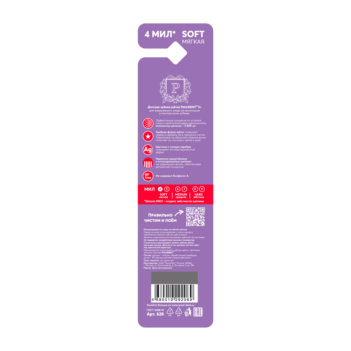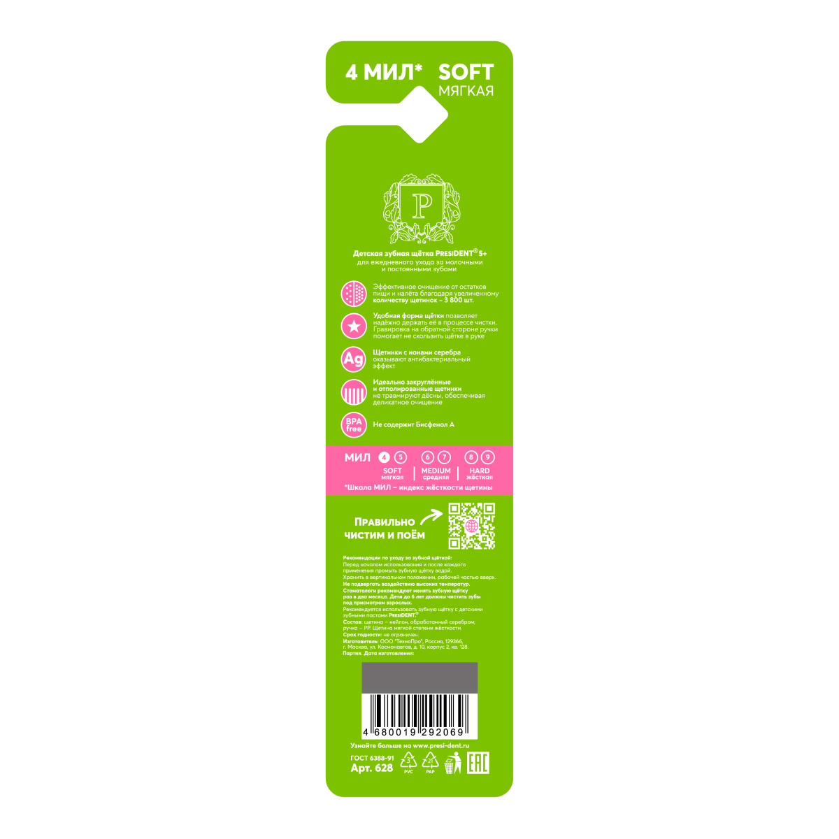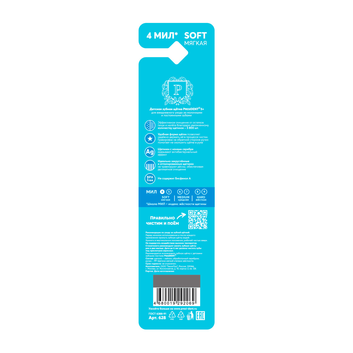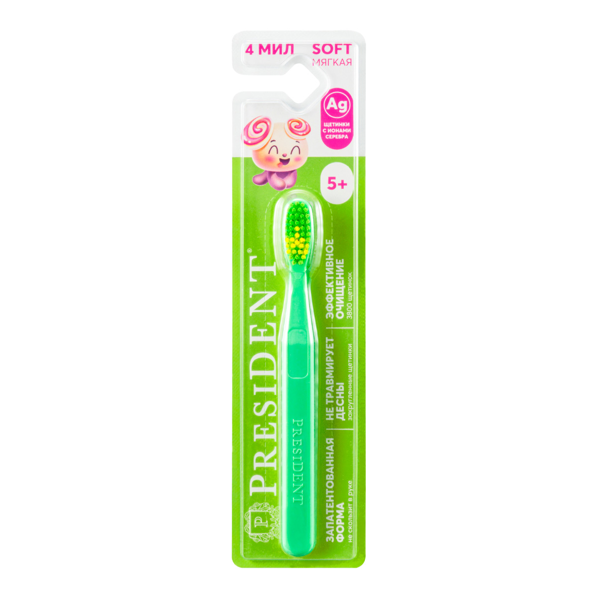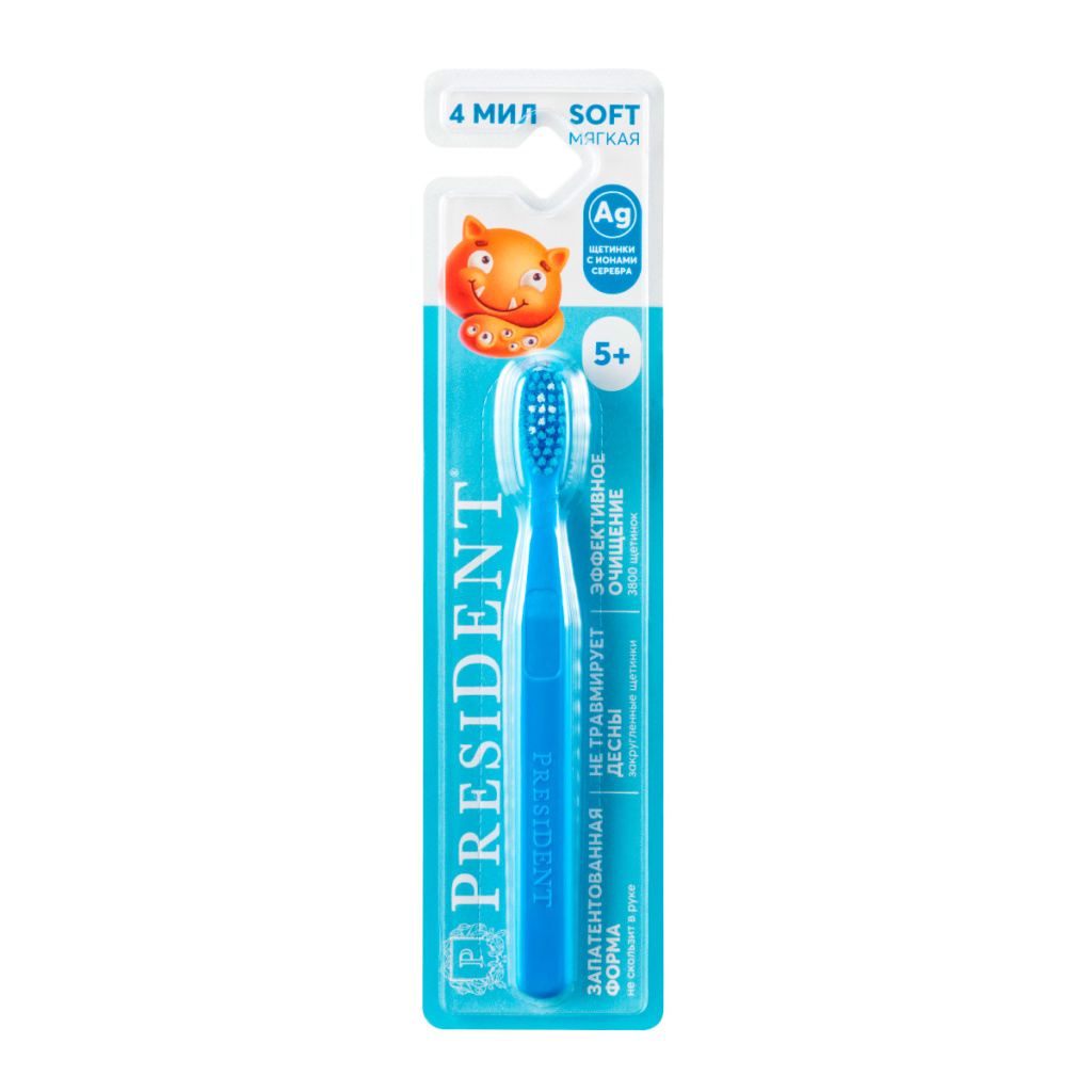 Детская зубная щетка PRESIDENT 5+ - мягкая зубная щетка PRESIDENT ® для детей от 5-ти лет.