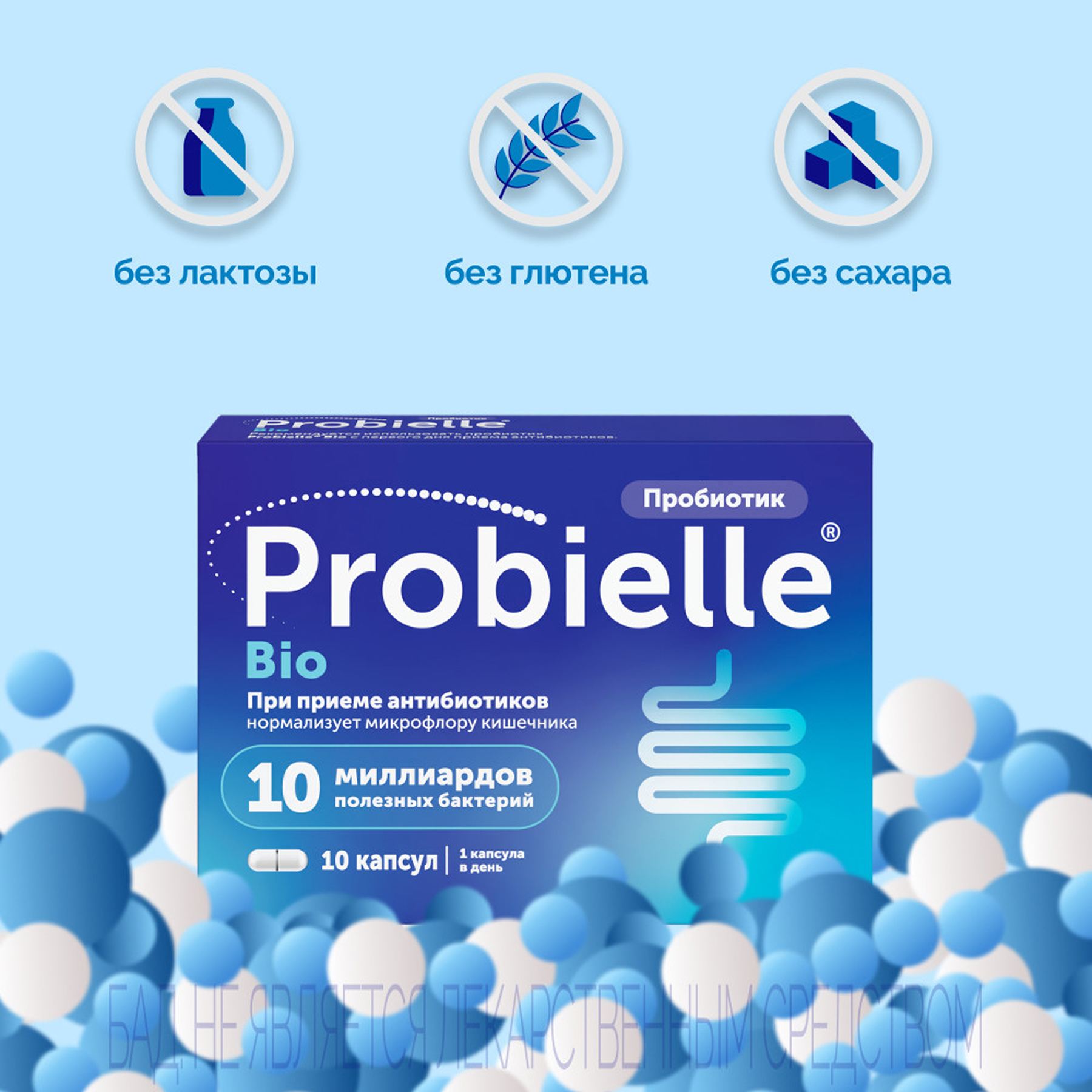 ПРОБИЭЛЬ БИО (Probielle Bio) - Биологически активная добавка (БАД) к пище - особая комбинация из 10 миллиардов полезных лакто- и бифидобактерий, специально разработанная для поддержания микрофлоры кишечника и работы ЖКТ во время и после приема антибиотиков.