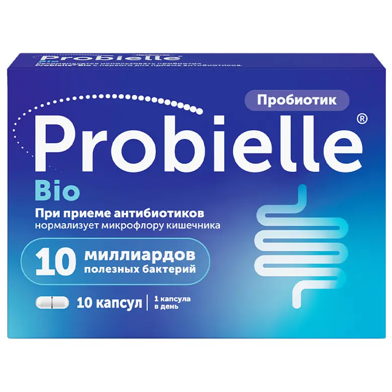 Probielle Bio - особая комбинация из 10 миллиардов полезных лакто- и бифидобактерий, специально разработанная для поддержания микрофлоры кишечника и работы ЖКТ во время и после приема антибиотиков.