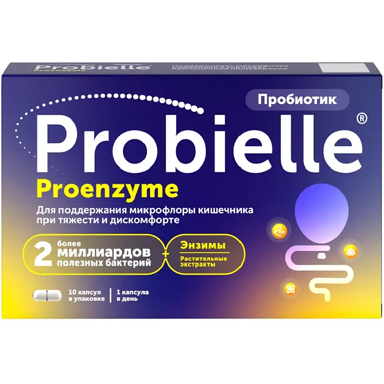 Probielle® Proenzyme может использоваться в качестве средства для поддержания микрофлоры кишечника и процессов полноценного пищеварения и нормального газообразования: