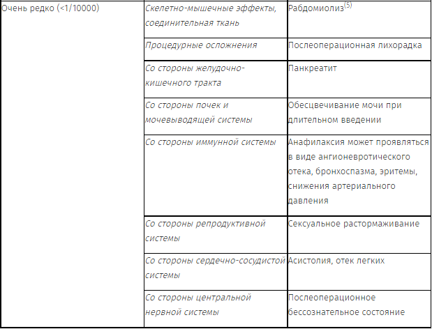 (5) Известно об очень редких случаях рабдомиолиза при применении препарата в дозе более 4 мг/кг/ч для седации при интенсивной терапии.