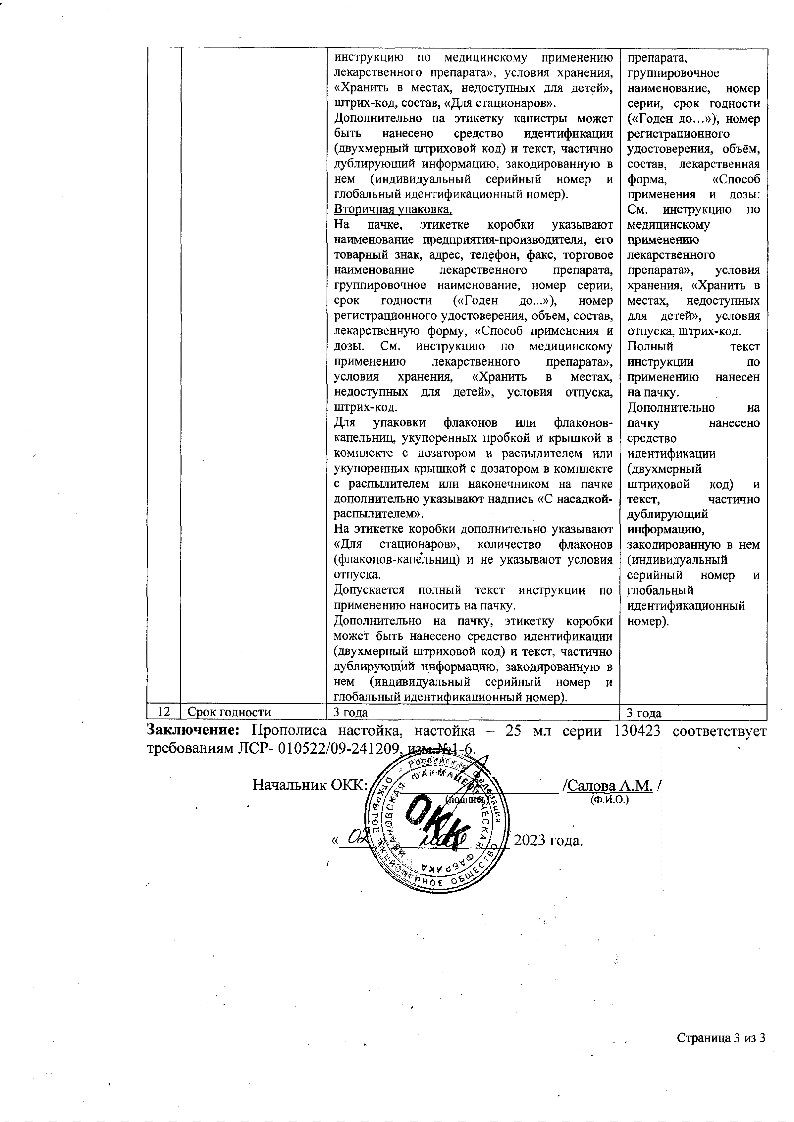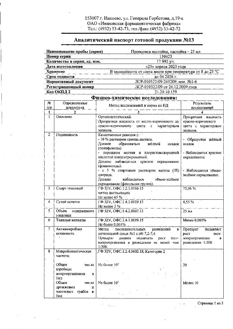 Активное вещество: прополис 100 г;
