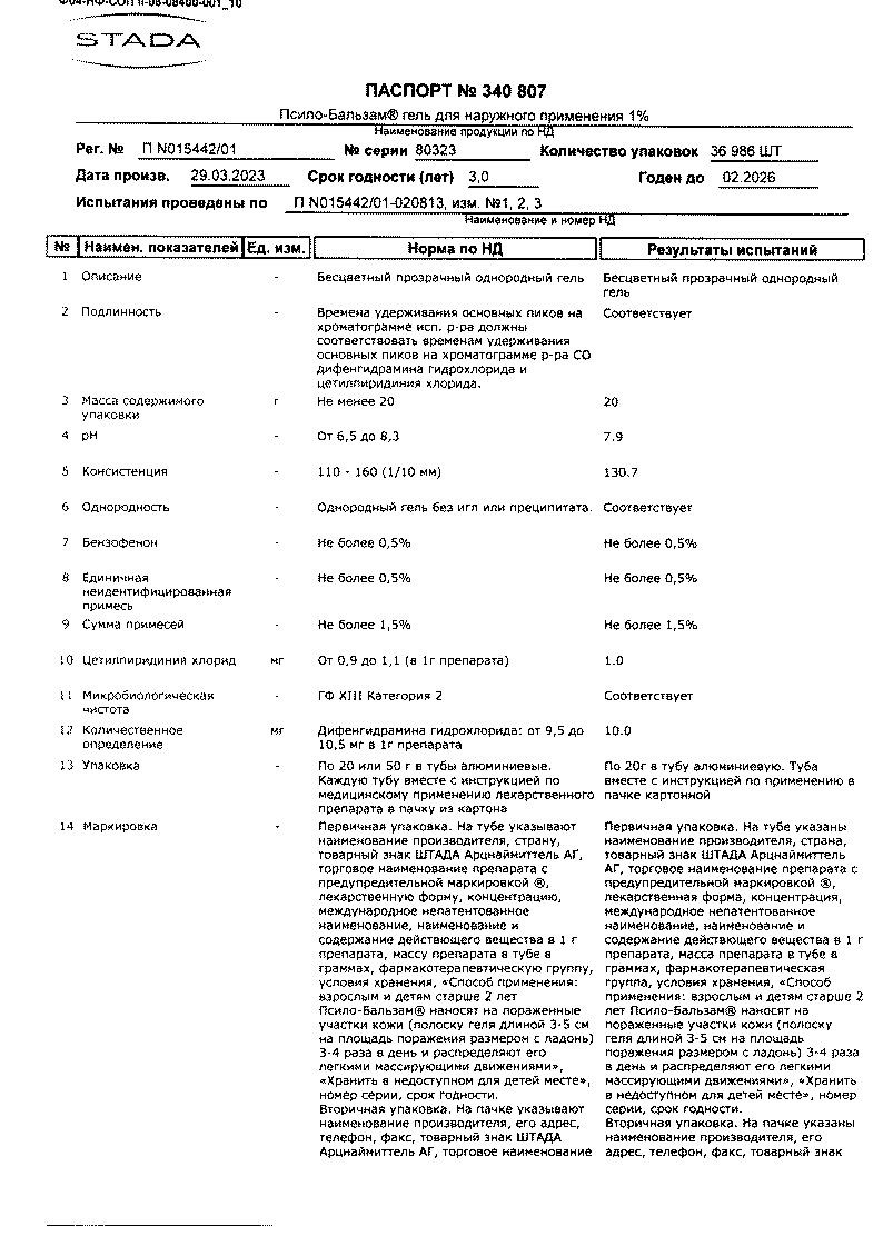 Противоаллергическое действие Псило-Бальзама® связано с наличием в его составе дифенгидрамина гидрохлорида, который является блокатором .Н1-гистаминовых рецепторов и вследствие этого быстро снижает зуд, уменьшает боль, гиперемию, снижает повышенную проницаемость капилляров, отек тканей; вызывает местную анестезию, за счет чего Псило-Бальзам® обладает приятным охлаждающим действием. Специальная гелевая основа защищает кожу и не оставляет видимого следа.