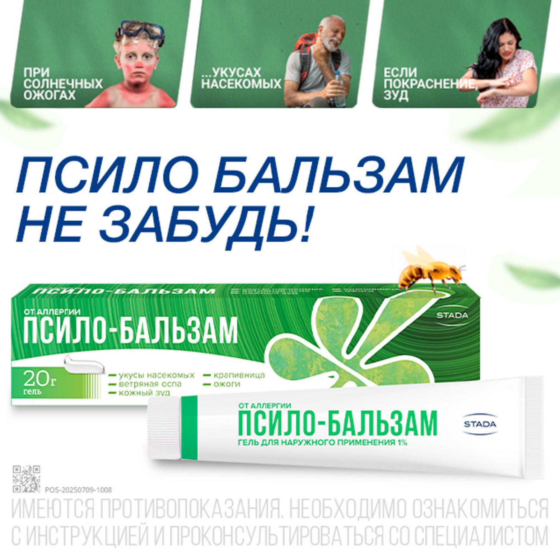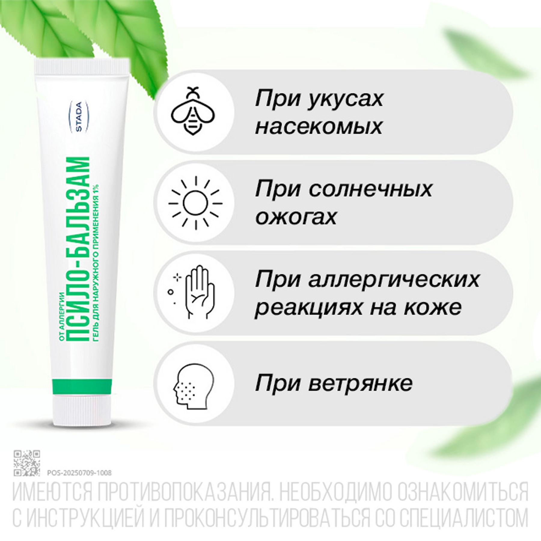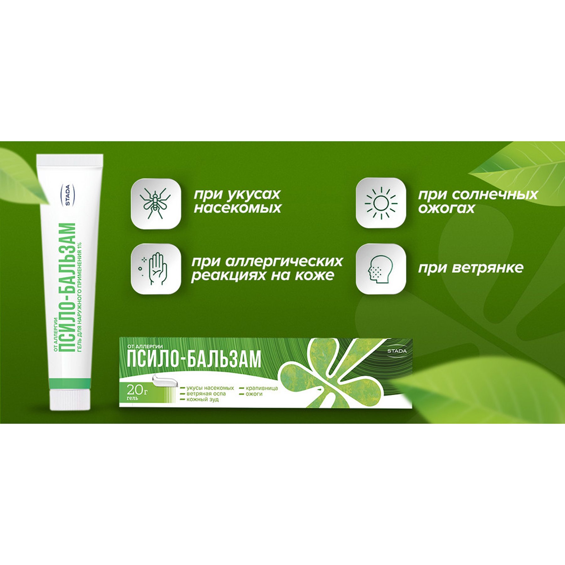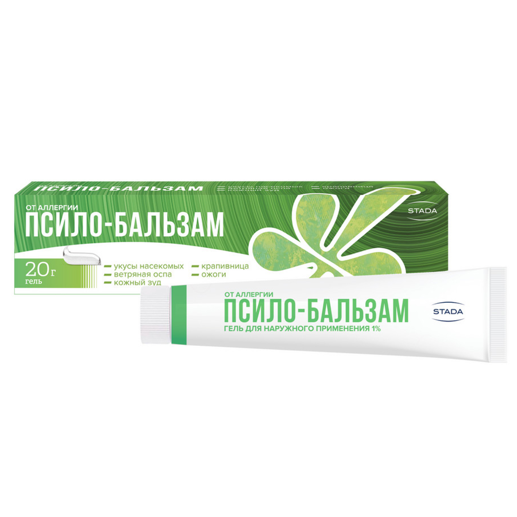 Противоаллергическое действие Псило-Бальзама® связано с наличием в его составе дифенгидрамина гидрохлорида, который является блокатором .Н1-гистаминовых рецепторов и вследствие этого быстро снижает зуд, уменьшает боль, гиперемию, снижает повышенную проницаемость капилляров, отек тканей; вызывает местную анестезию, за счет чего Псило-Бальзам® обладает приятным охлаждающим действием. Специальная гелевая основа защищает кожу и не оставляет видимого следа.