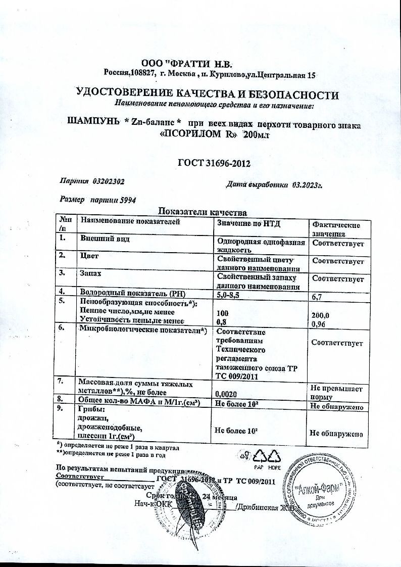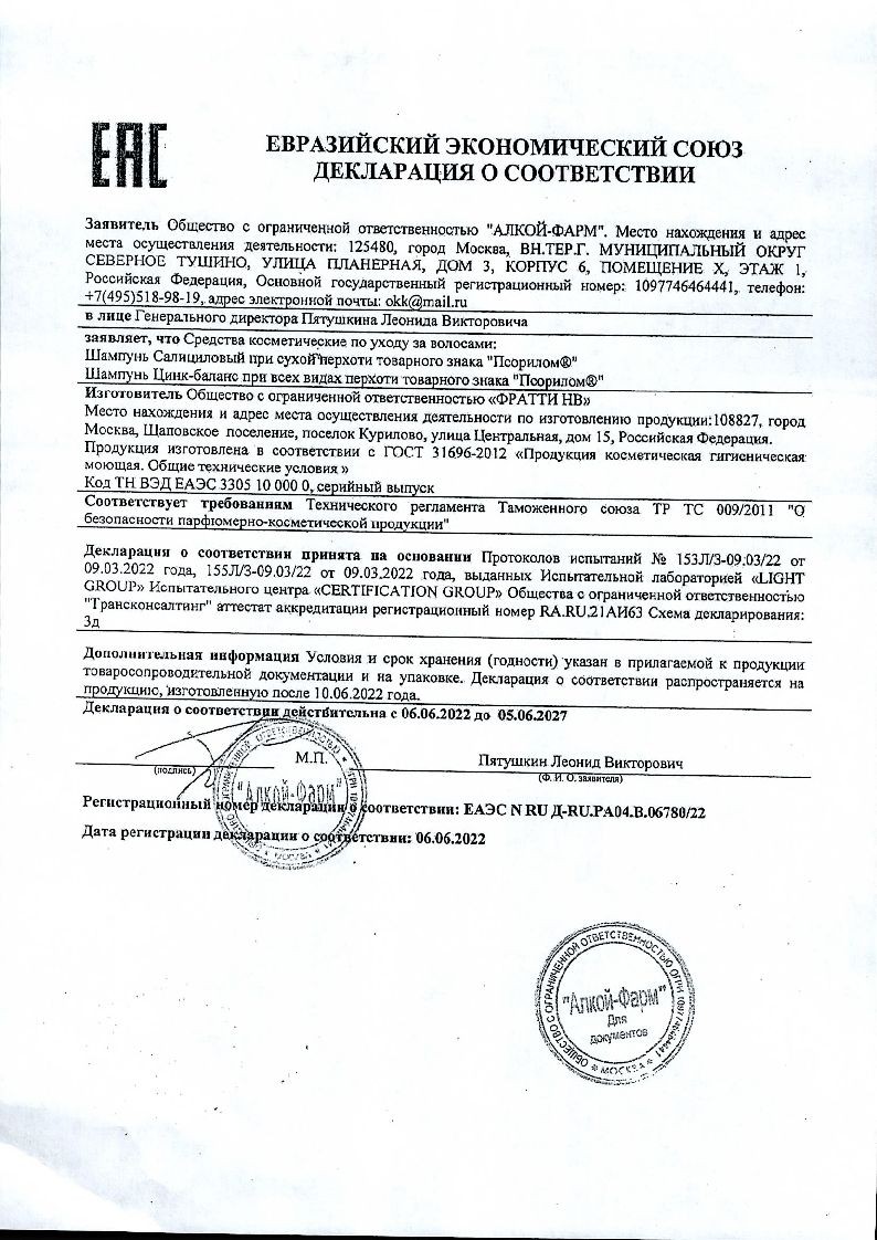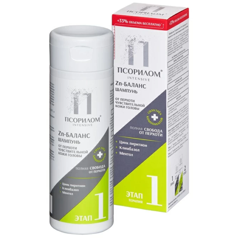 Специализированный шампунь Псорилом® Цинк – баланс – оказывает успокаивающее и противозудное действие на раздраженную и склонную к зуду кожу головы, благодаря свойствам входящих в состав компонентов.