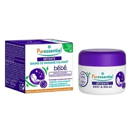 Уникальная формула Puressentiel Rest & Relax Balm Baby была разработана специально для ухода за нежной детской кожей. Органические масла, входящие в состав средства, питают, увлажняют и смягчают эпидермис. Комплекс натуральных эфирных масел способствует расслаблению ребенка, устраняет нервное возбуждение и облегчает засыпание. Кремовая текстура обеспечивает легкость нанесения и распределения средства. Детский успокаивающий бальзам Пюресансьель Отдых и релакс – лучший выбор для проведения массажа малышу перед сном!