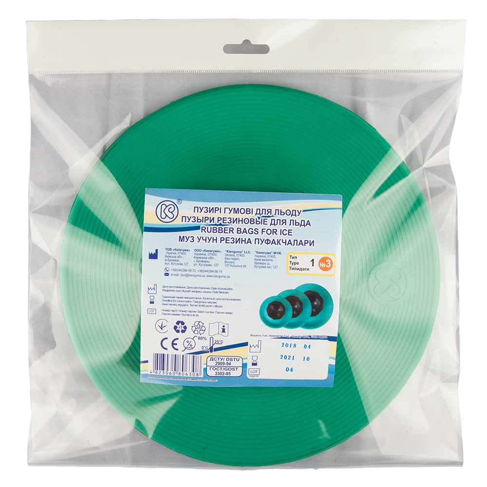Товар имеет общее медицинское назначение — соответствует первому типу. Выполнен в виде плоского блина с округлым дном диаметром 25 см., широким отверстием для помещения льда и завинчивающейся крышкой. Пузырь имеет литую структуру, изготовлен из качественной вулканизированной резины, устойчивой к химикатам, воздействию низкой и высокой температуры. Материал изделия не выделяет опасных соединений, безопасен и экологичен.