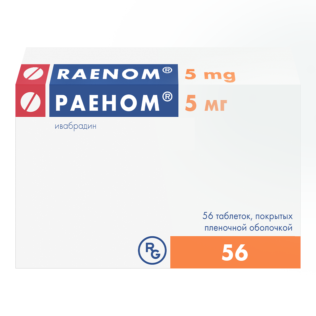 Если значение ЧСС находится в диапазоне от 50 до 60 уд/мин, рекомендуется применять препарат Раеном® в дозе 5 мг 2 раза в сутки.