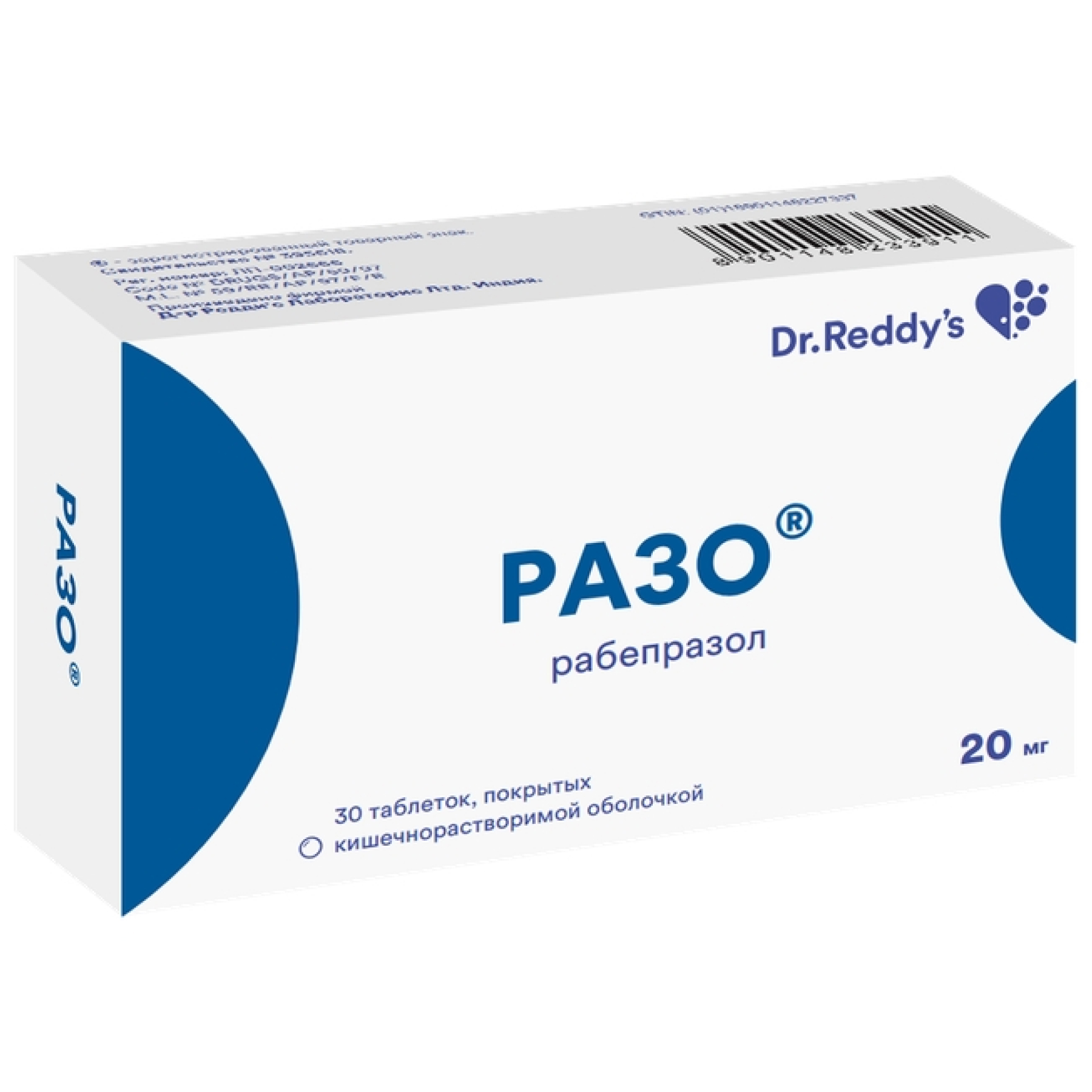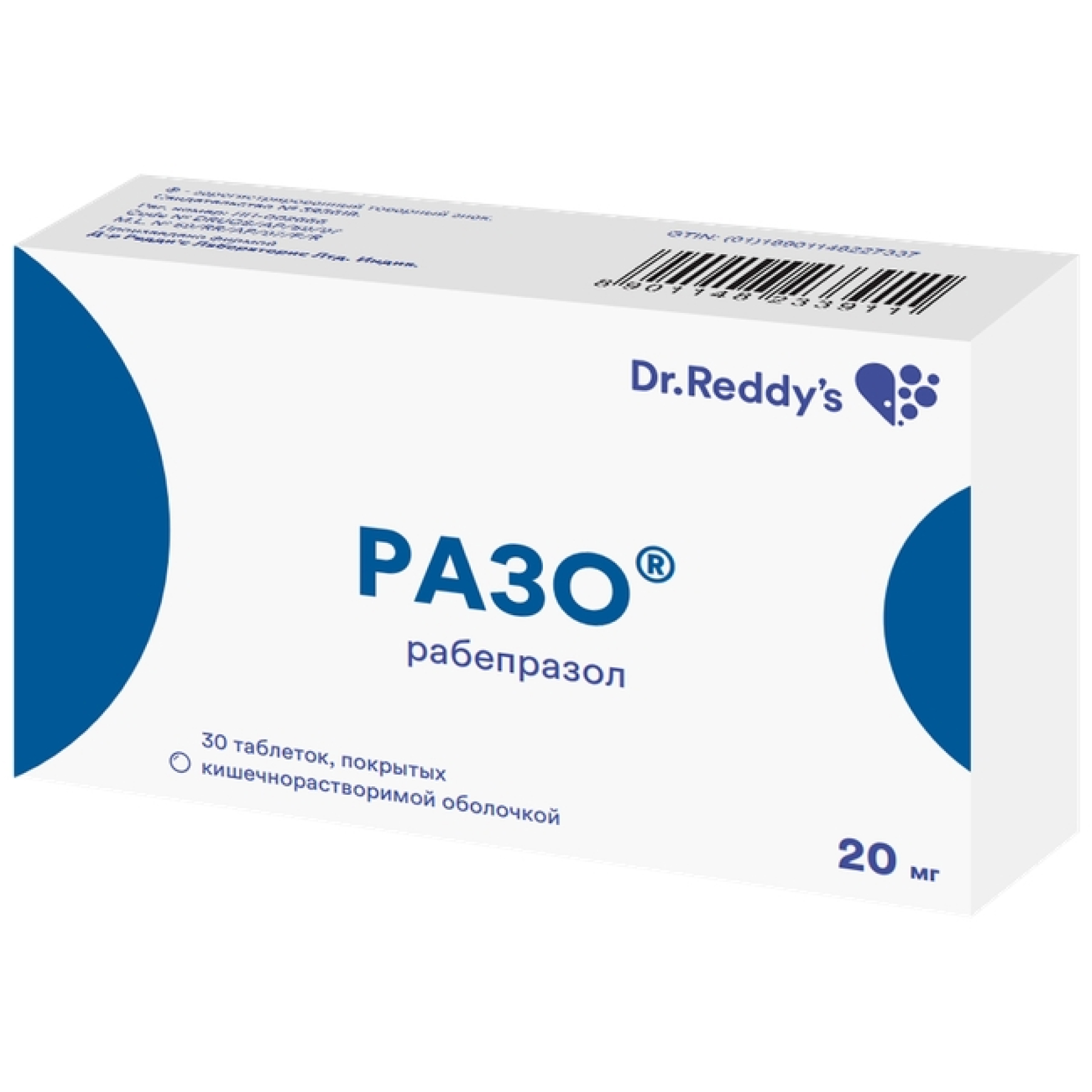 Таблетки, покрытые кишечнорастворимой оболочкой от светло-желтого до желтого цвета, круглые, двояковыпуклые, с маркировкой красного цвета "RB20" на одной стороне; на поперечном разрезе ядро от белого до почти белого цвета.