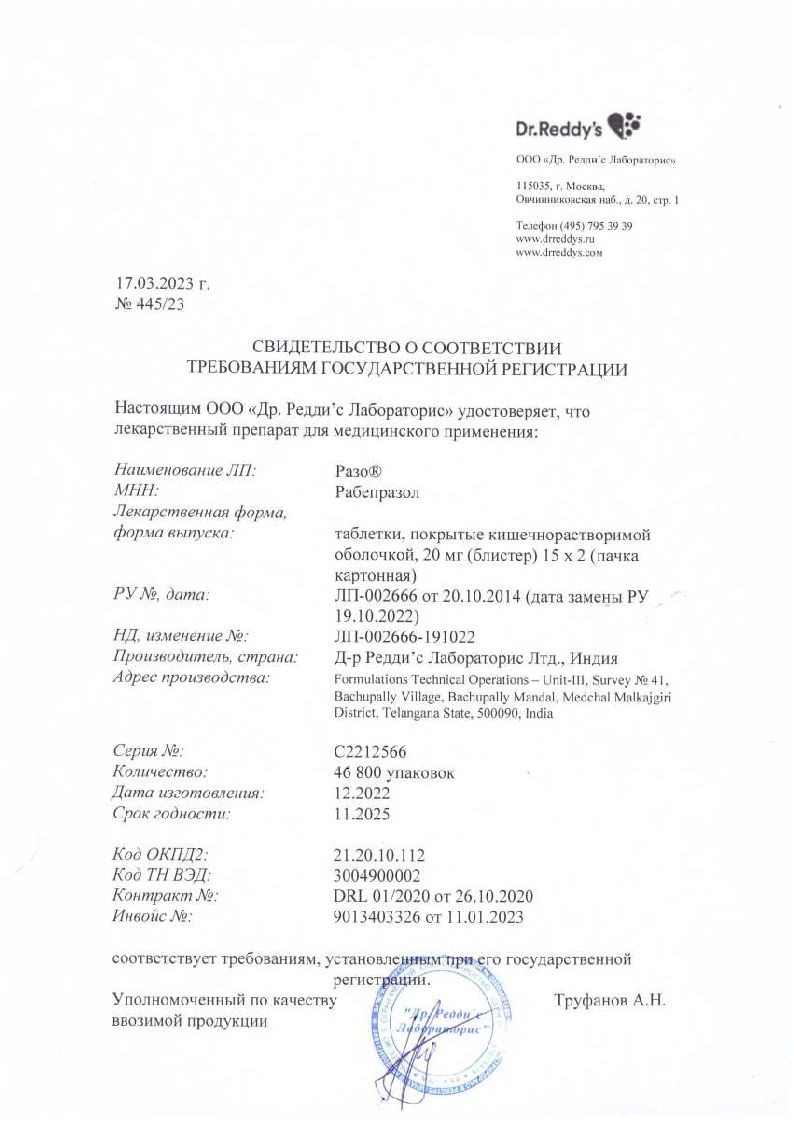 Лечение: специфический антидот для рабепразола неизвестен. Рабепразол хорошо связывается с белками плазмы, поэтому слабо выводится при диализе. При передозировке необходимо проводить симптоматическое и поддерживающее лечение.