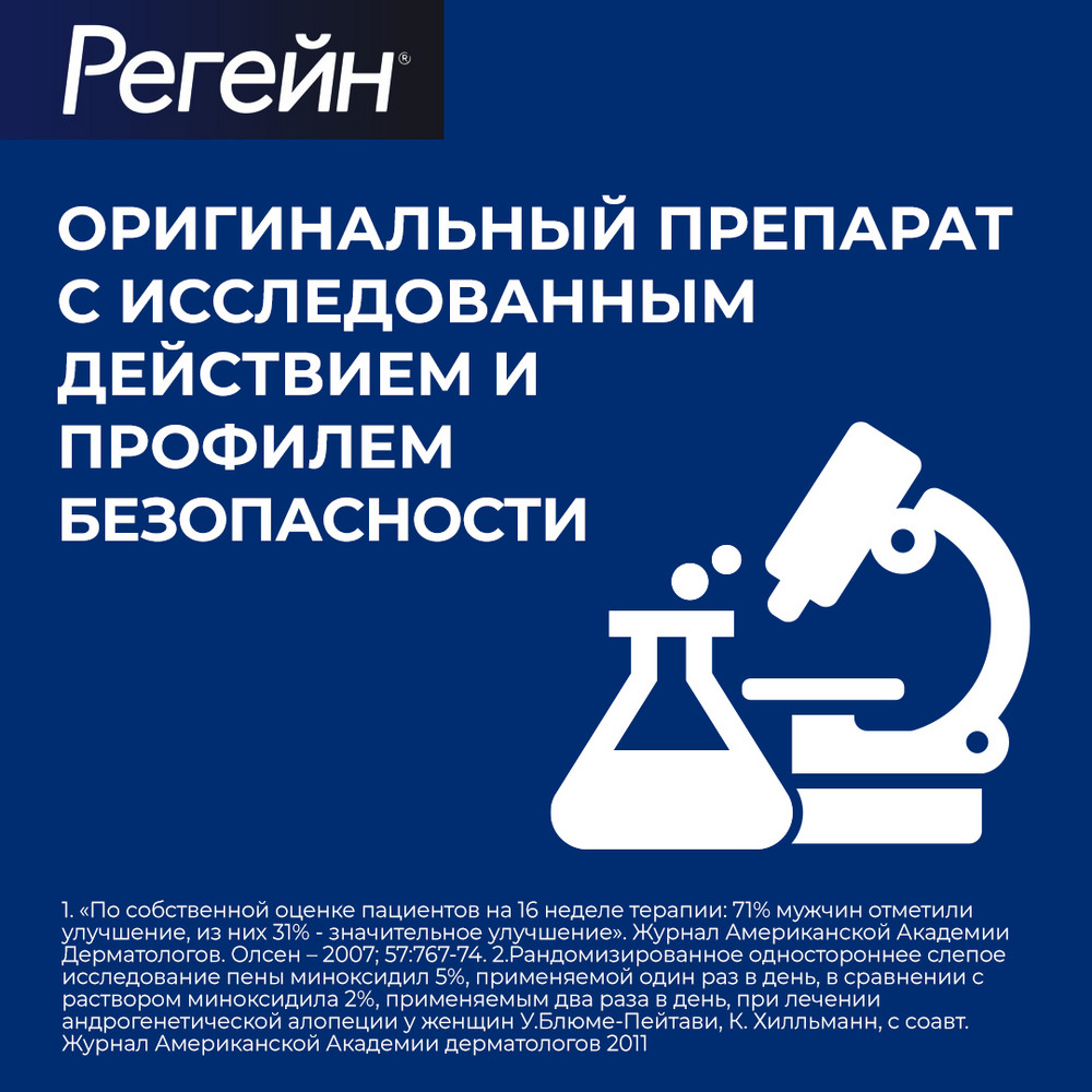 Появление первых признаков приостановления выпадения волос и восстановления роста волос возможно после применения лекарственного препарата Регейн® 2 раза в сутки у мужчин в течение 2-4 месяцев и 1 раз в сутки у женщин в течение 3-6 месяцев.