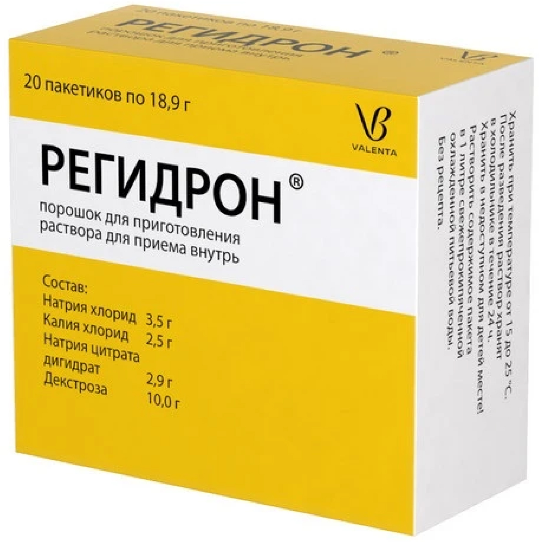 При введении большого объема или высококонцентрированного раствора Регидрон® (при нарушении правил приготовления раствора) может возникнуть гипернатриемия (повышение содержания натрия в крови). Симптомы гипернатриемии включают в себя слабость, нервно-мышечное возбуждение, сонливость, спутанность сознания, кому, иногда даже остановку дыхания. У пациентов со сниженной функцией почек может возникнуть гиперкалиемия (повышение содержания калия в крови), проявляющаяся нарушением ритма сердца, слабость.