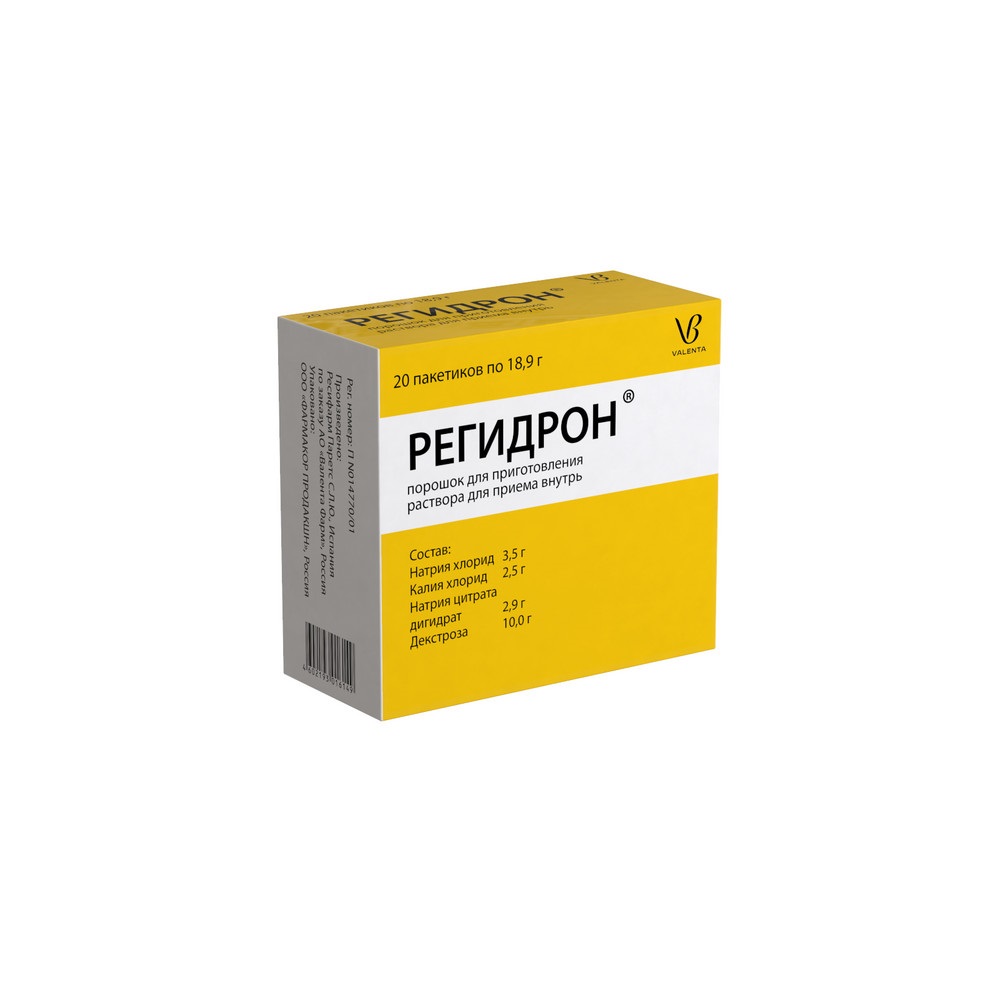 При введении большого объема или высококонцентрированного раствора Регидрон® (при нарушении правил приготовления раствора) может возникнуть гипернатриемия (повышение содержания натрия в крови). Симптомы гипернатриемии включают в себя слабость, нервно-мышечное возбуждение, сонливость, спутанность сознания, кому, иногда даже остановку дыхания. У пациентов со сниженной функцией почек может возникнуть гиперкалиемия (повышение содержания калия в крови), проявляющаяся нарушением ритма сердца, слабость.