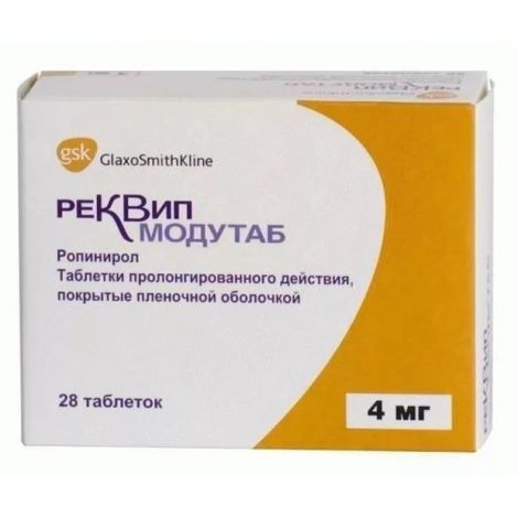 Пренарат Реквип Модутаб® выпускается в виде таблеток пролонгированного действия, покрытых пленочной оболочкой, со свойством высвобождения действующего вещества в течение 24 ч. В случае быстрого прохождения препарата через ЖКТ существует риск неполного высвобождения лекарственного вещества и перехода его остатка в стул.