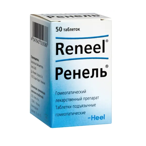 Ренель – это гомеопатическое средство, которое производится немецкой фармацевтической компанией Хеель. Препарат выпускается в форме таблеток для подъязычного применения. Каждая имеет плоскоцилиндрическую форму и фаску, цвет – белый с оттенками желтого, допускаются вкрапления желтого, коричневого или серого цвета. Специфический запах отсутствует. Упаковка содержит 50 таблеток.