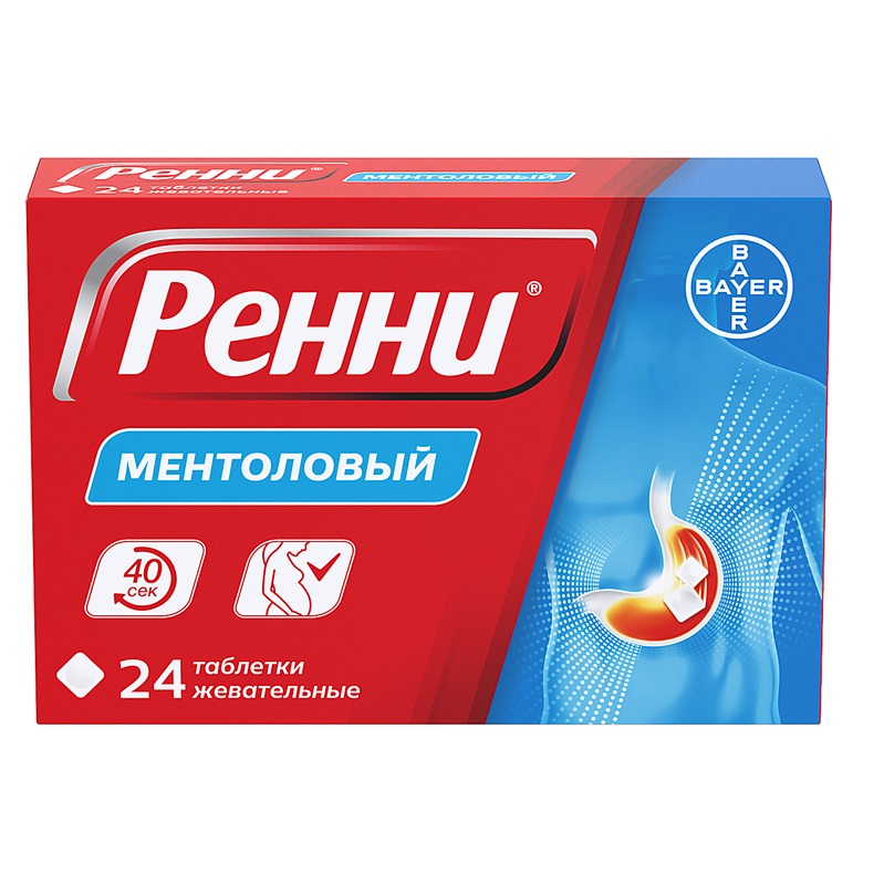 Препарат Ренни® показан к применению у взрослых и детей старше 12 лет для устранения симптомов, связанных с повышенной кислотностью желудочного сока и рефлюкс-эзофагитом: