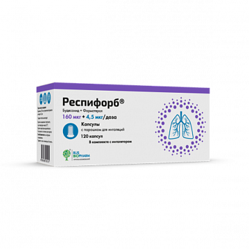 Респифорб® содержит формотерол и будесонид, которые имеют разные механизмы действия и проявляют аддитивный эффект в отношении снижения частоты обострений бронхиальной астмы, хронической обструктивной болезни легких (ХОБЛ). Особые свойства будесонида и формотерола дают возможность использовать их комбинацию для купирования приступов/симптомов с противовоспалительным действием, или как поддерживающую терапию бронхиальной астмы.