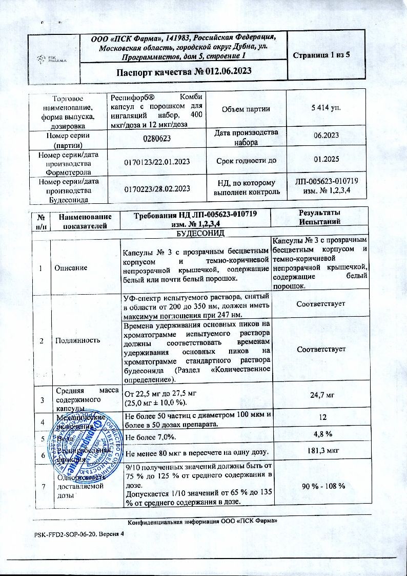 У пациентов с хронической обструктивной болезнью легких (ХОБЛ) стабильного течения формотерол, применяемый в виде ингаляций при помощи ингалятора, поставляемого вместе с препаратом Респифорб® Комби в дозах по 12 или 24 мкг 2 раза в день, вызывает быстрое наступление бронхорасширяющего эффекта, который продолжается в течение минимум 12 часов и сопровождается улучшением качества жизни.