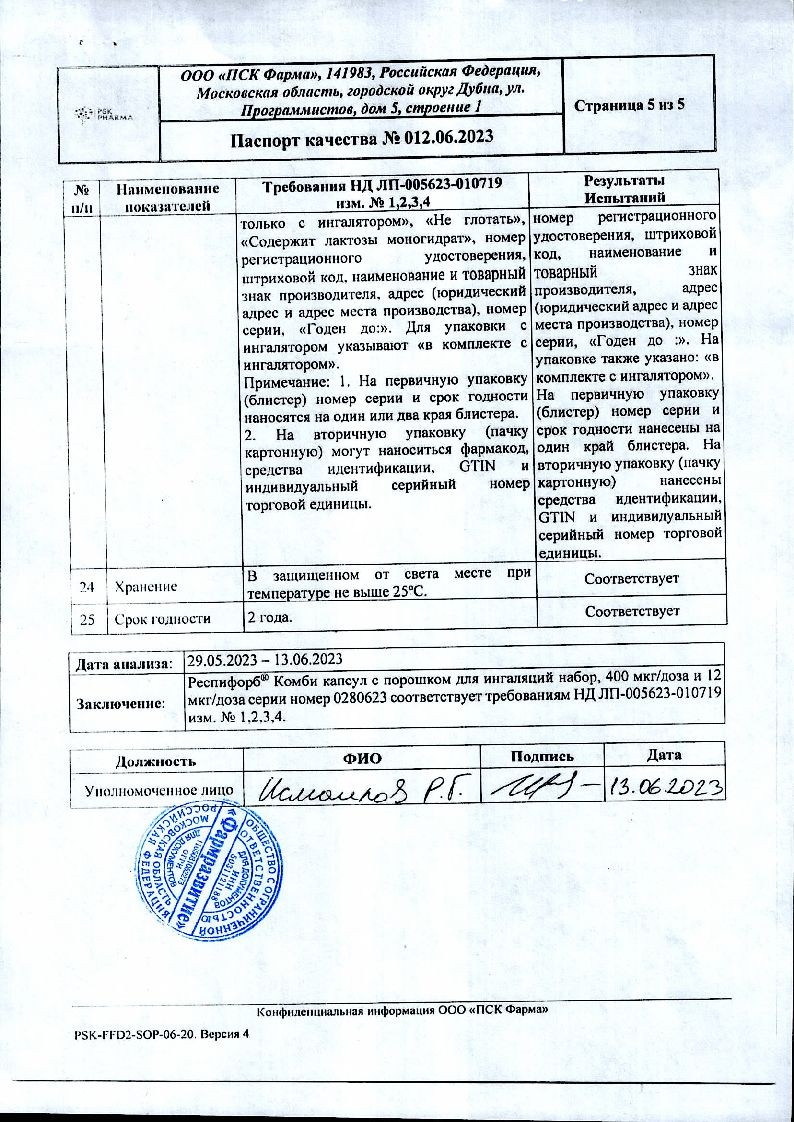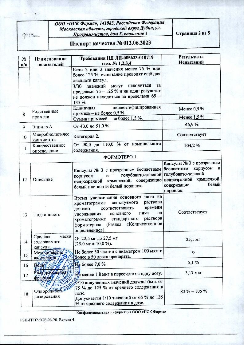 Действующее вещество: Формотерола фумарата дигидрат 12,0 мкг.