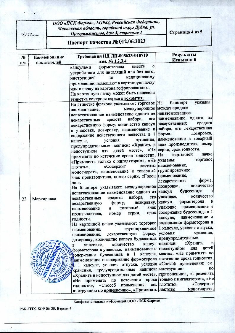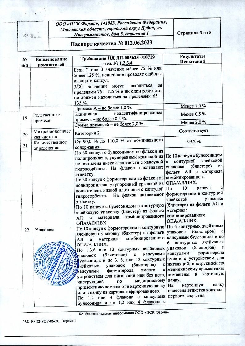 При недостаточной эффективности терапии или превышения максимально рекомендуемых доз формотерола или будесонида необходимо пересмотреть тактику лечения.