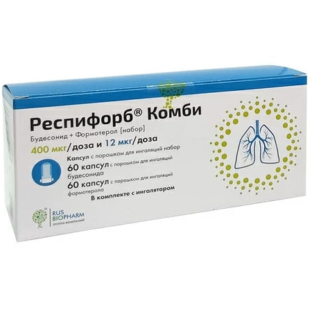 Препарат Респифорб® Комби представляет собой капсулы с порошком для ингаляций, которые следует применять только с помощью специального ингалятора, который входит в комплект упаковки. Препарат не предназначен для приема внутрь.