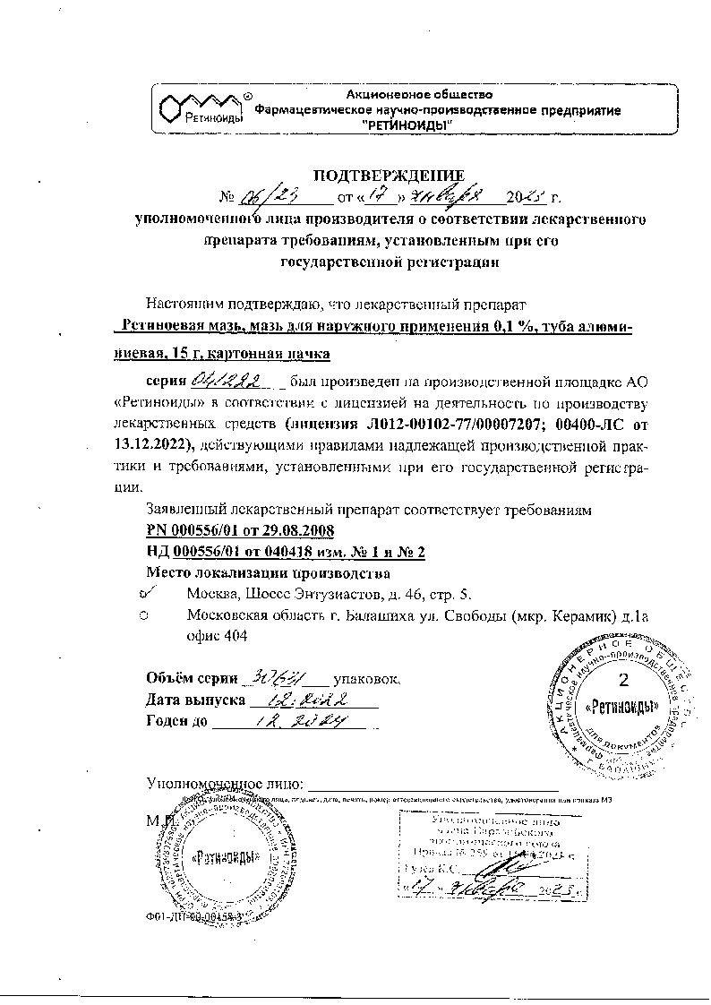 Мазь не следует назначать больным, получающим другие препараты из группы ретиноидов, чтобы уменьшить риск возникновения гипервитаминоза А. Действие мази ослабляется при одновременном местном применении глюкокортикостероидов.