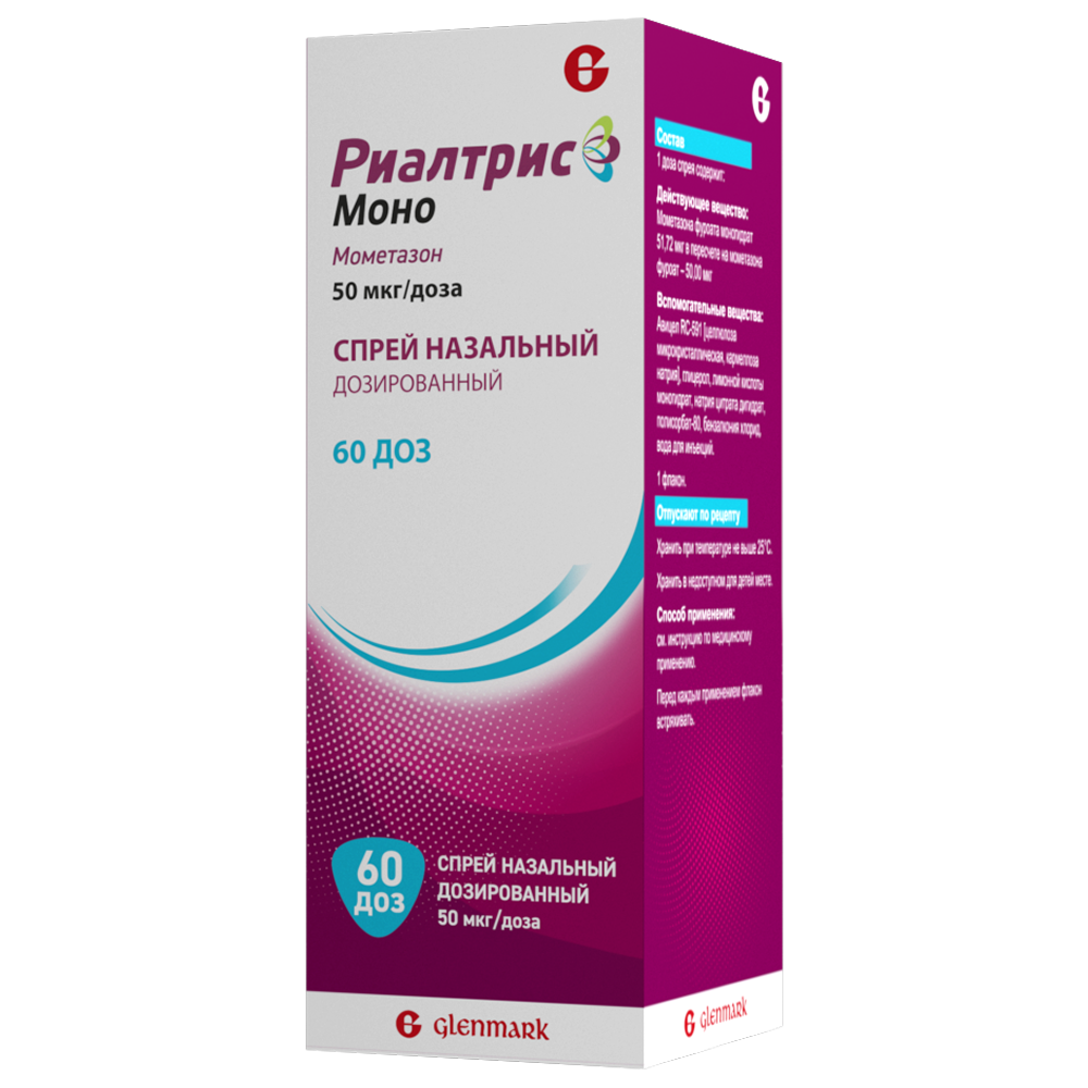 Во время перехода от лечения глюкокортикостероидами системного действия к лечению препаратом Риалтрис Моно у некоторых пациентов могут возникнуть начальные симптомы отмены системных глюкокортикостероидов (например, боли в суставах и/или мышцах, чувство усталости и депрессия), несмотря на уменьшение выраженности симптомов, связанных с поражением слизистой оболочки носа. Таких пациентов необходимо убеждать в целесообразности продолжения лечения препаратом. Переход от системных к местным глюкокортикостероидам может также выявить уже существовавшие, но маскировавшиеся терапией глюкокортикостероидами системного действия аллергические заболевания, такие как аллергический конъюнктивит и экзема.