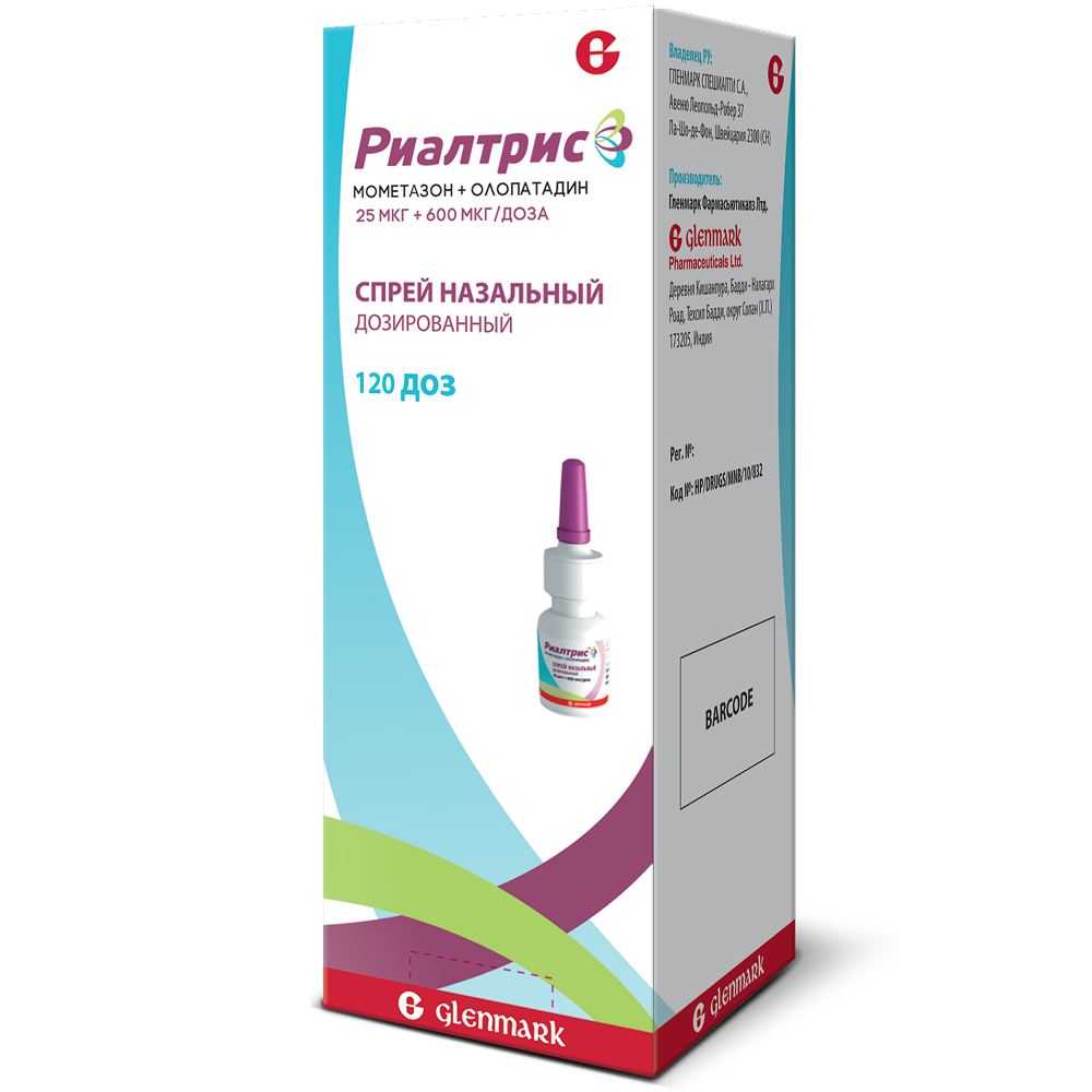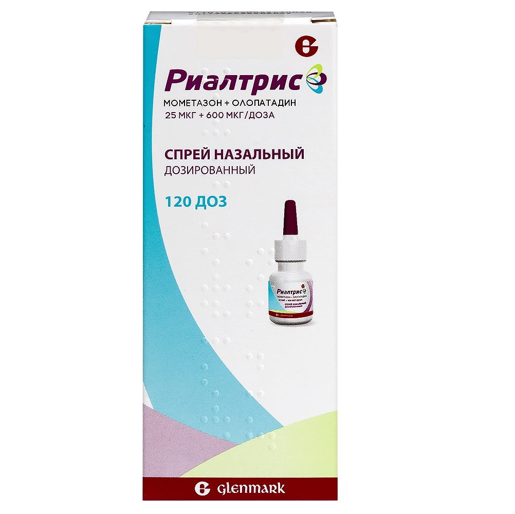 Острая передозировка при использовании данной лекарственной формы маловероятна, поскольку 1 флакон препарата Риалтрис, рассчитан на 30 дней применения (240 доз), содержит около 6 мг мометазона фуроата и 160 мг олопатадина гидрохлорида.