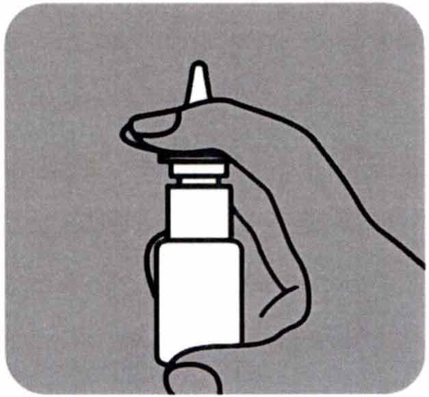 Крепко удерживайте флакон, поместив указательный и средний палец с двух сторон дозирующего устройства (место опоры для пальца) и упираясь в ребристое дно флакона большим пальцем. (См. Рисунок 5).