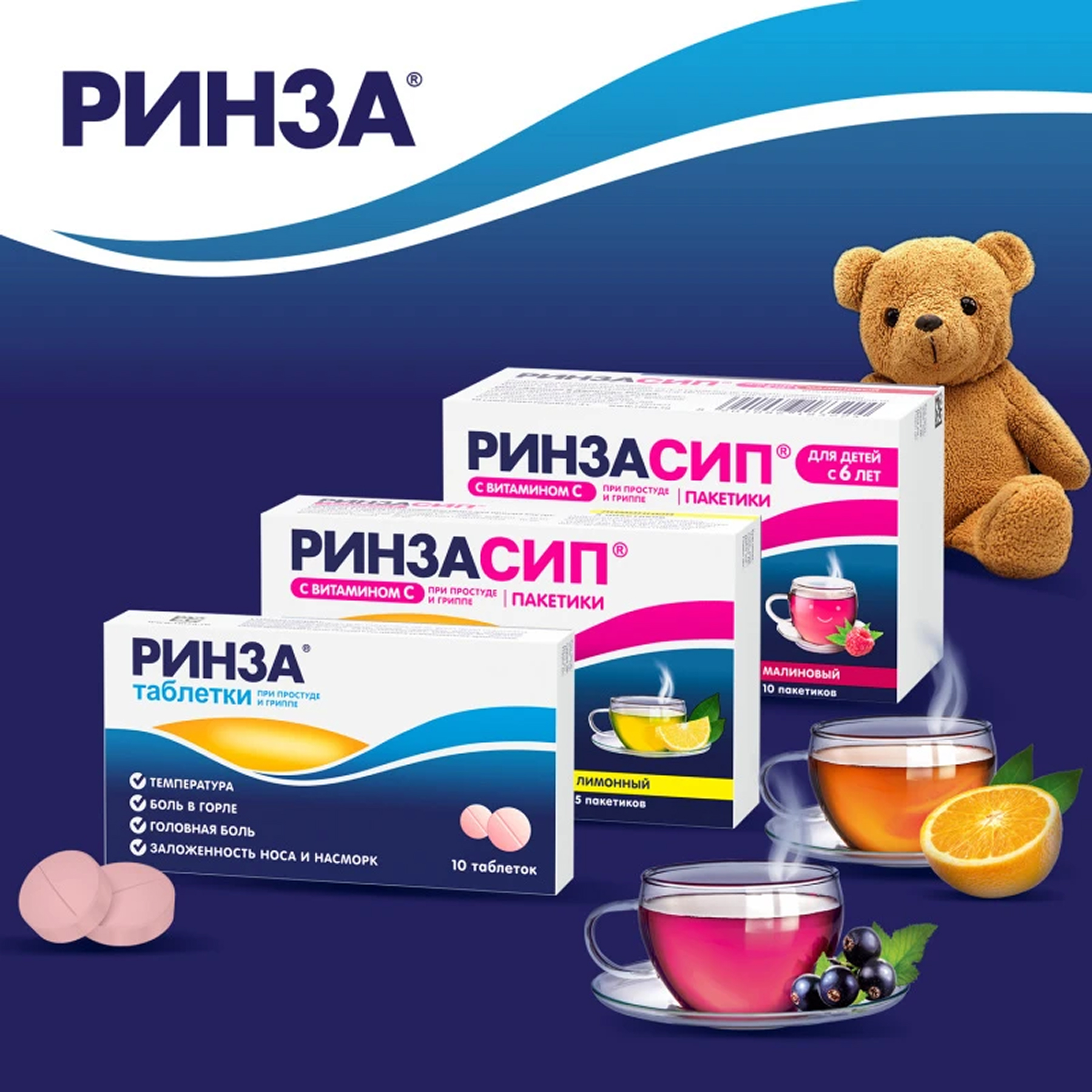 Детский порошок при простуде Ринзасип® с приятным малиновым вкусом - это препарат, который способствует облегчению основных симптомов простуды, ОРВИ и гриппа.