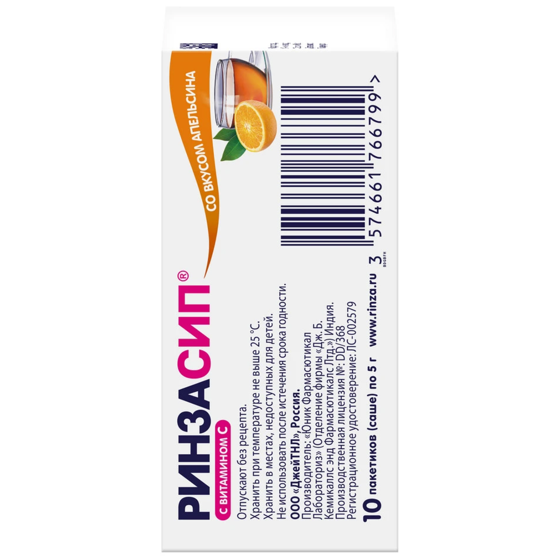 Порошок при простуде Ринзасип® с приятным апельсиновым вкусом - это препарат, который способствует облегчению основных симптомов простуды, ОРВИ и гриппа. Повышенное (1) содержание парацетамола и комплекс активных компонентов, входящих в состав, помогает снижать температуру, уменьшать болевой синдром в горле, мышцах и суставах, бороться с ознобом, заложенностью носа и насморком. Кофеин, входящий в состав, усиливает действие парацетамола (2), а Витамин С повышает сопротивляемость организма к воздействию различных неблагоприятных факторов внешней среды и укрепляет иммунитет. Разрешено к применению с 15 лет. 1. В сравнении с препаратами, содержащими меньше 750 мг парацетамола. 2. Кофеин ускоряет абсорбцию и усиливает анальгетический эффект ацетоминафена. Б. Реннер, Д.Кларк. Журнал клинической фармакологии, 18.04.2007.